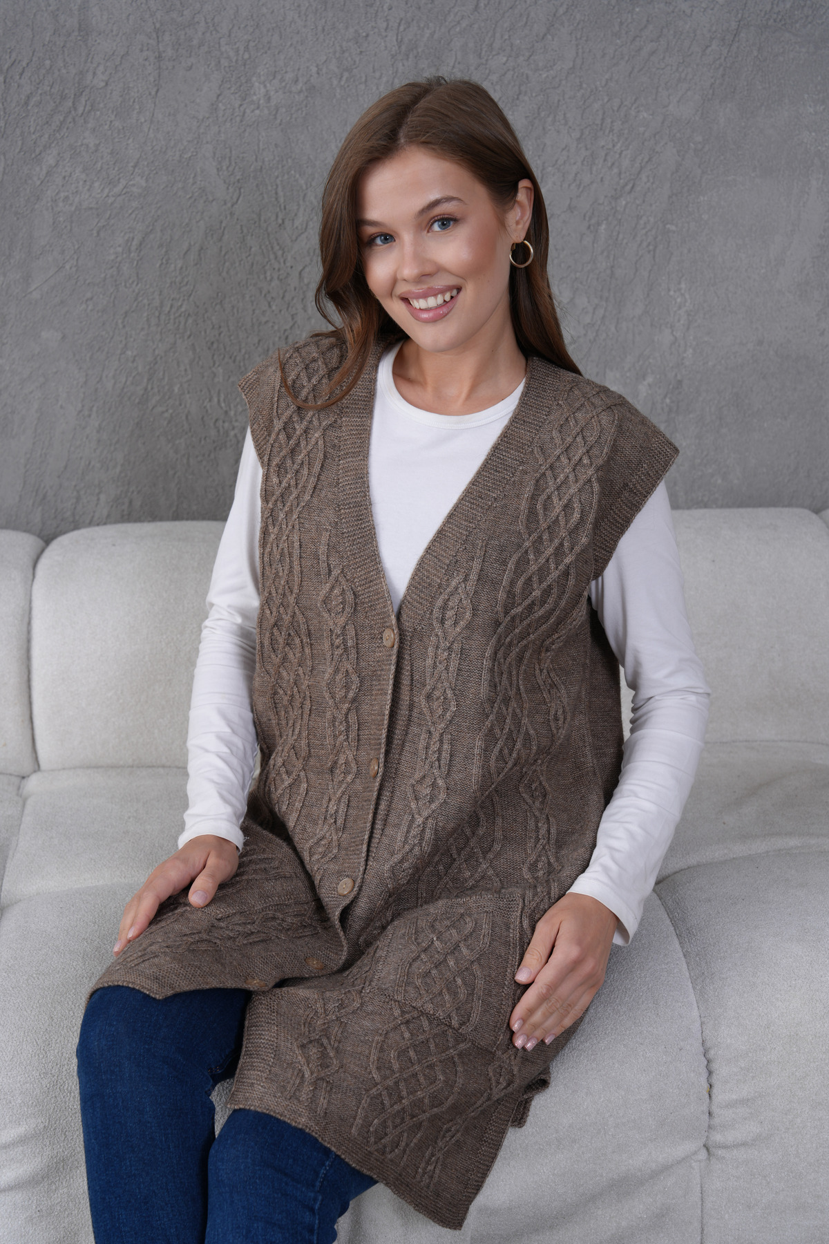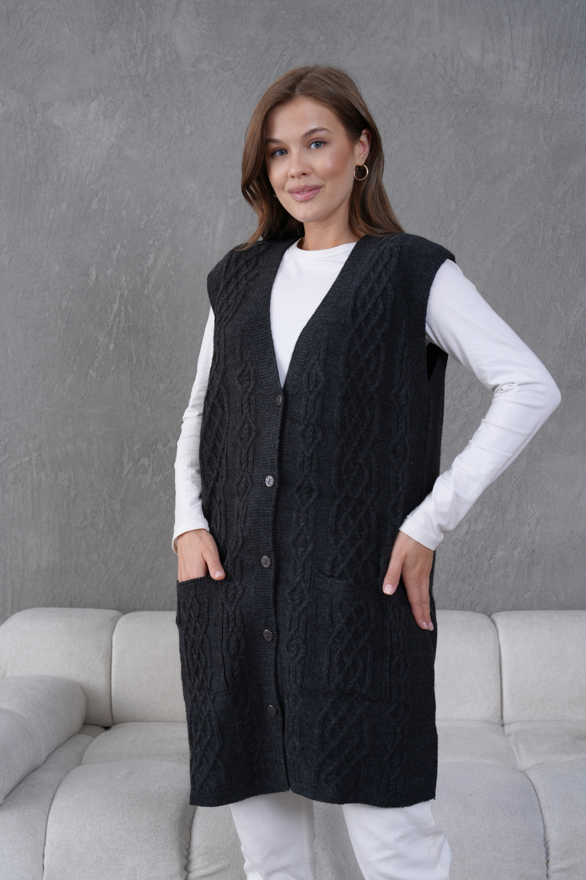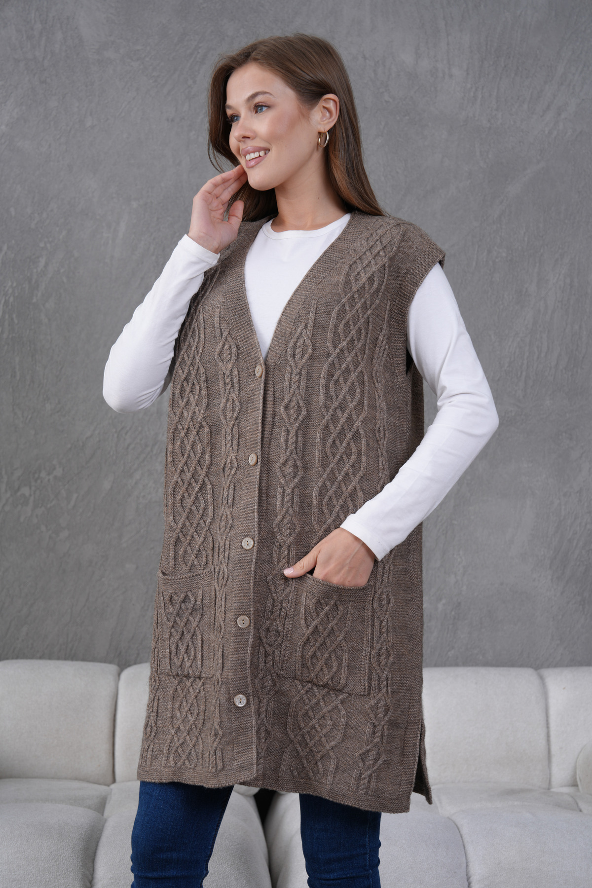 Triko Harttuş Uzun Yelek Triko Harttuş Uzun Yelek 602 3XL