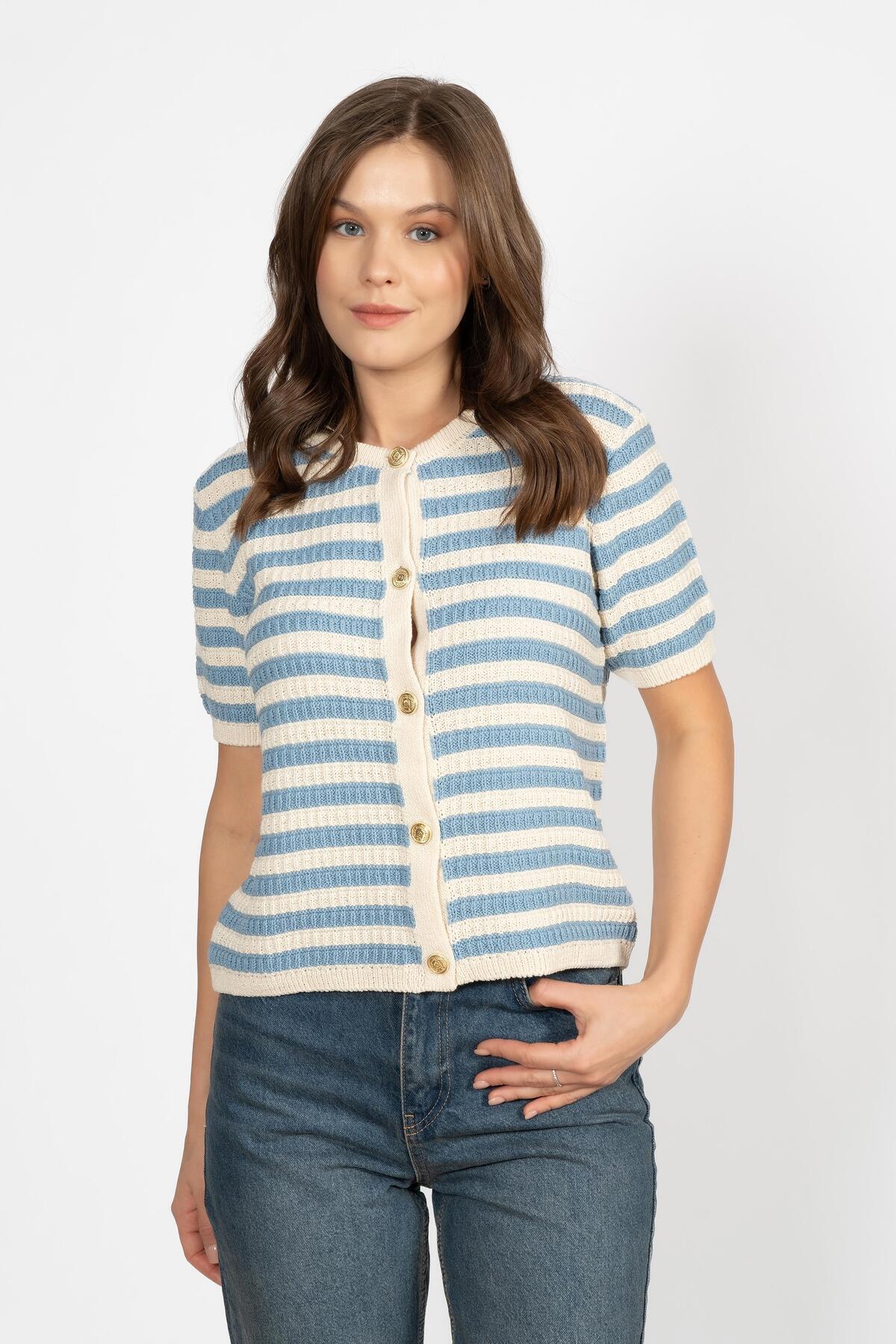 RTD & VLD Kadın İnci Düğmeli Kısa Kollu Triko Bluz RTD & VLD Kadın İnci Düğmeli Kısa Kollu Triko Bluz RTD111 XL