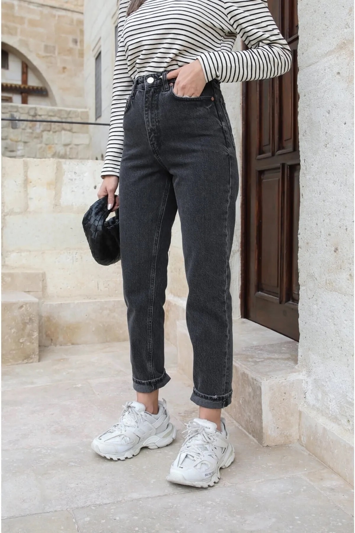 Füme Yüksek Bel Yumuşak Dokunuşlu Rahat Kesim Mom Jean Kot Pantolon Füme Yüksek Bel Yumuşak Dokunuşlu Rahat Kesim Mom Jean Kot Pantolon 4002 34