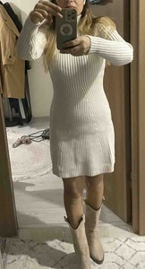 Kadın Krem Dik Yaka Fitilli Mini Triko Elbise Kadın Krem Dik Yaka Fitilli Mini Triko Elbise TE231046 Standart