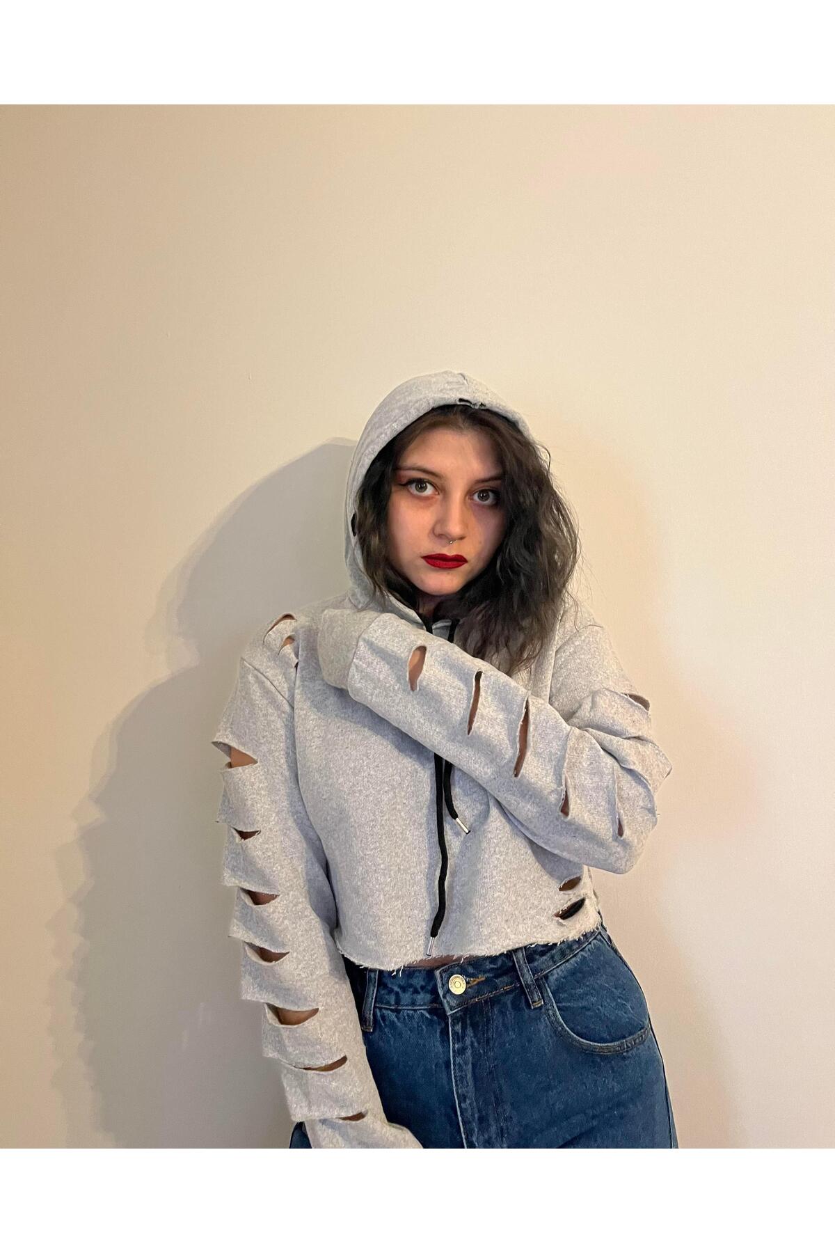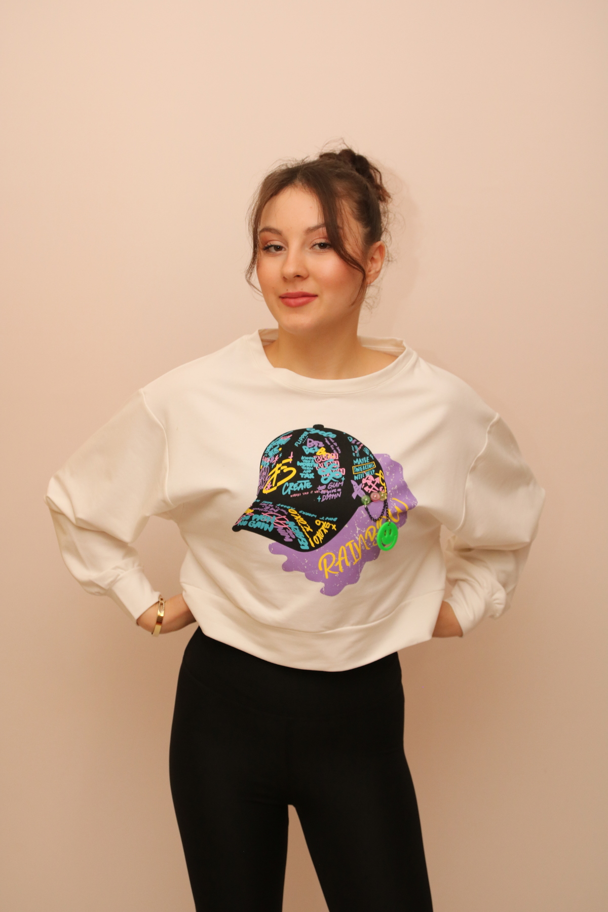 İşleme Detaylı Siyah Crop Sweatshirt İşleme Detaylı Siyah Crop Sweatshirt B7104 40