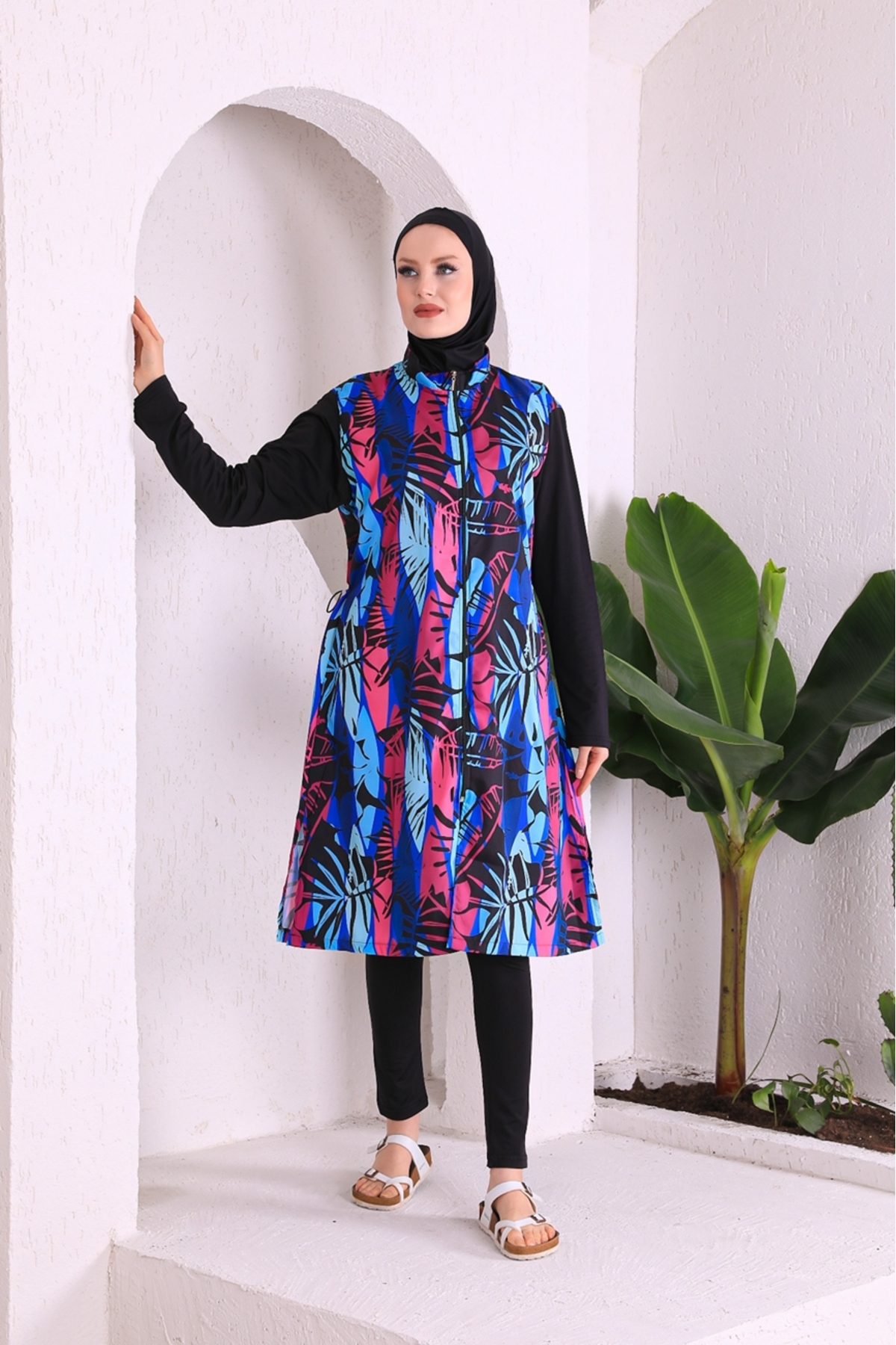 Büyük Beden Çiçekli Nanotex Tesettür Mayo Büyük Beden Çiçekli Nanotex Tesettür Mayo ZZ844 42-44