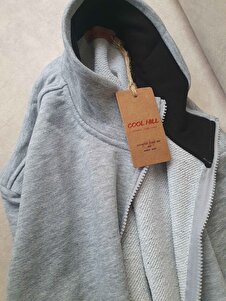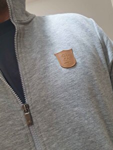 Gri Tam Fermuarlı Dik Yaka Armalı Erkek Sweatshirt Gri Tam Fermuarlı Dik Yaka Armalı Erkek Sweatshirt CHE-TF02 XL