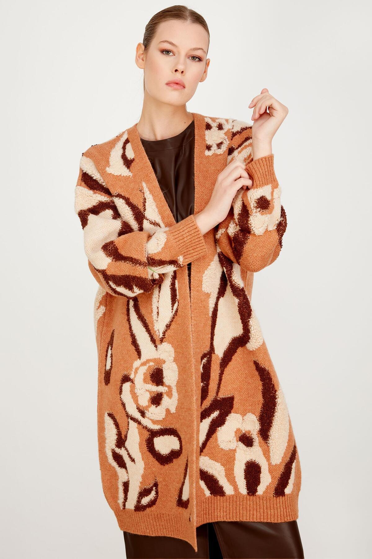 Kabartma Örgü Desenli Triko Hırka Somon Kabartma Örgü Desenli Triko Hırka Somon HRK.21467.1 2