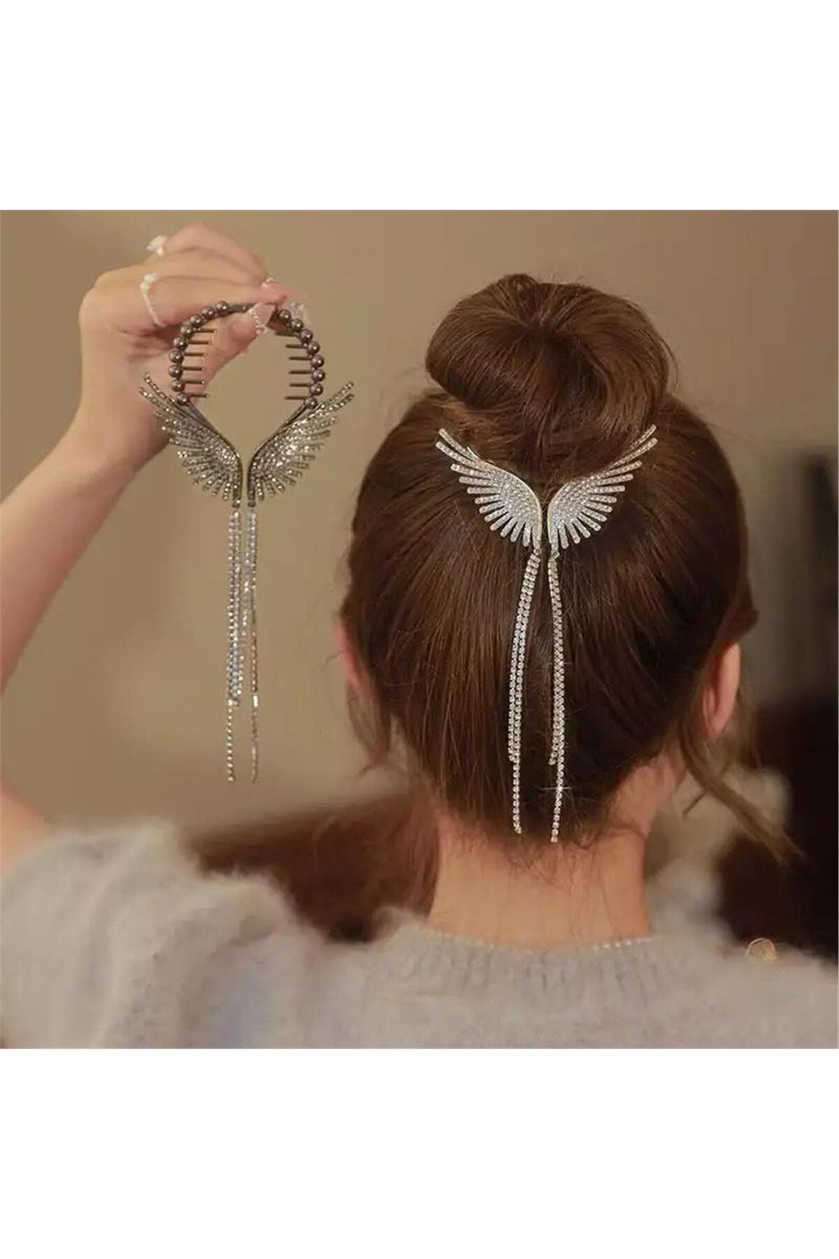 Füme Kristal ve İncili Kanat Topuz Tokası Füme Kristal ve İncili Kanat Topuz Tokası 7G002 تک سایز