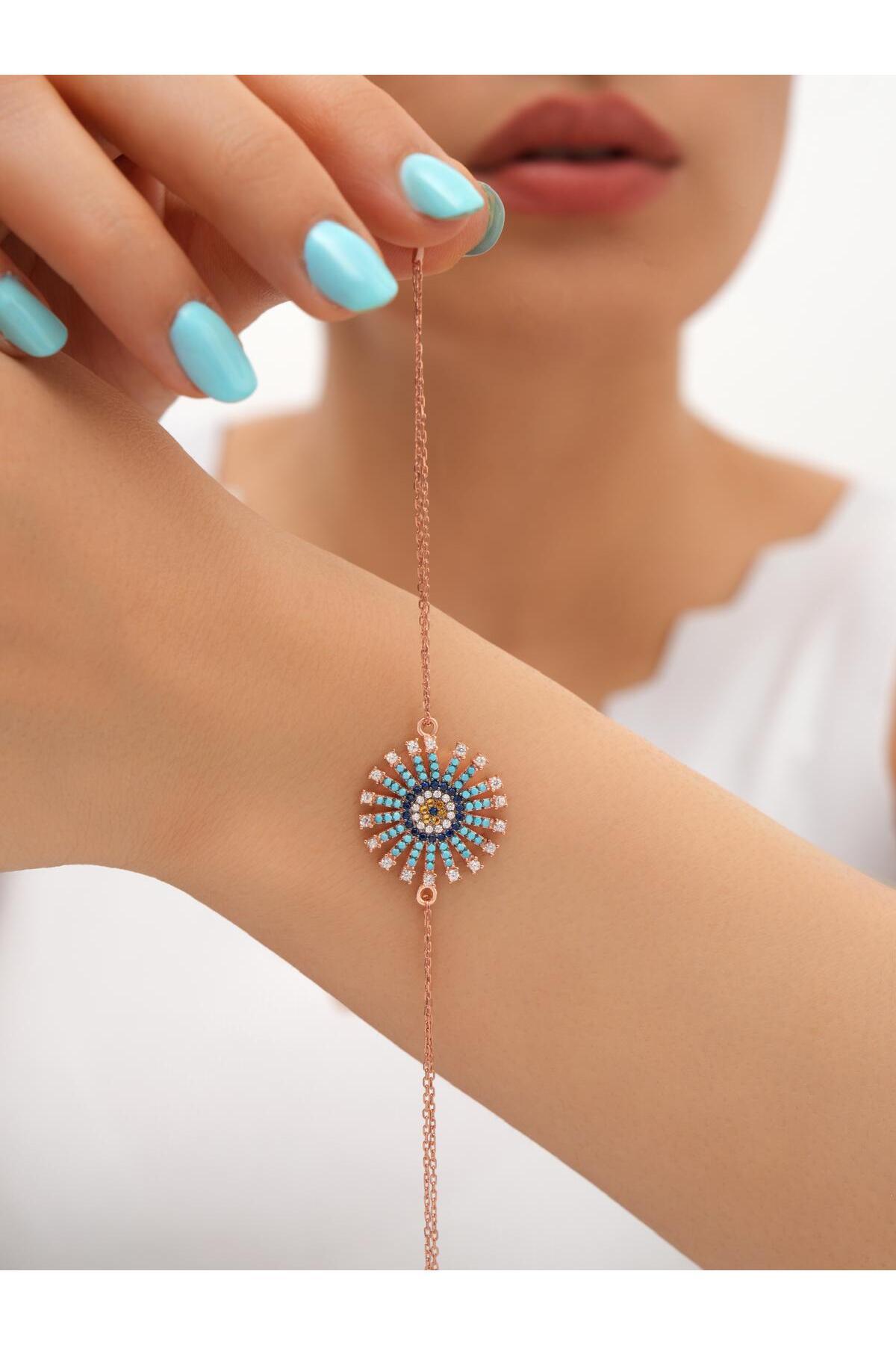 925 Ayar Rose Kaplama Nazar Boncuklu Gümüş Bileklik 925 Ayar Rose Kaplama Nazar Boncuklu Gümüş Bileklik SGB567 18