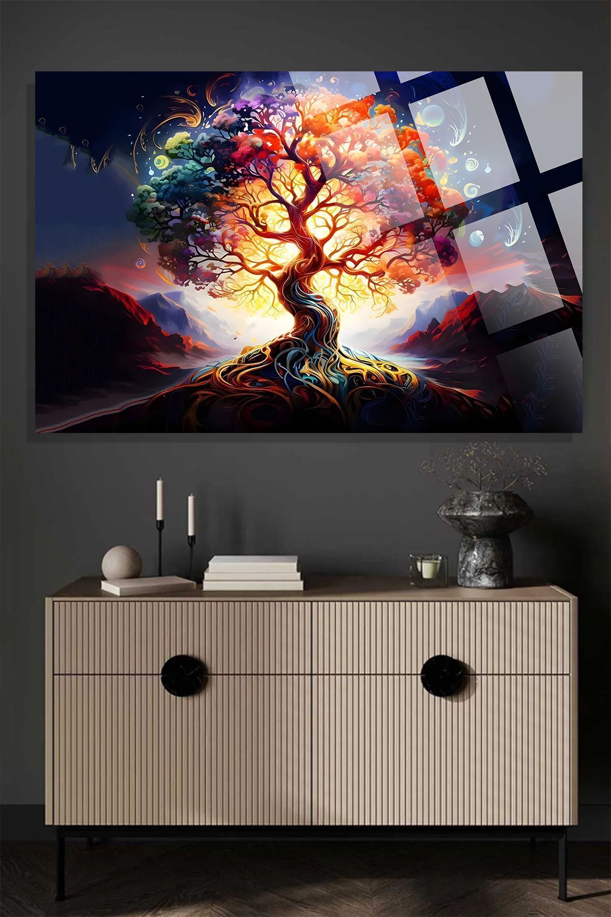 Cam Tablo - Dijital Yaşam Ağacı - Hayat Ağacı, Canlı Renkler, Kolaj, Cam Art Cam Tablo - Dijital Yaşam Ağacı - Hayat Ağacı, Canlı Renkler, Kolaj, Cam Art TOC 50 x 50