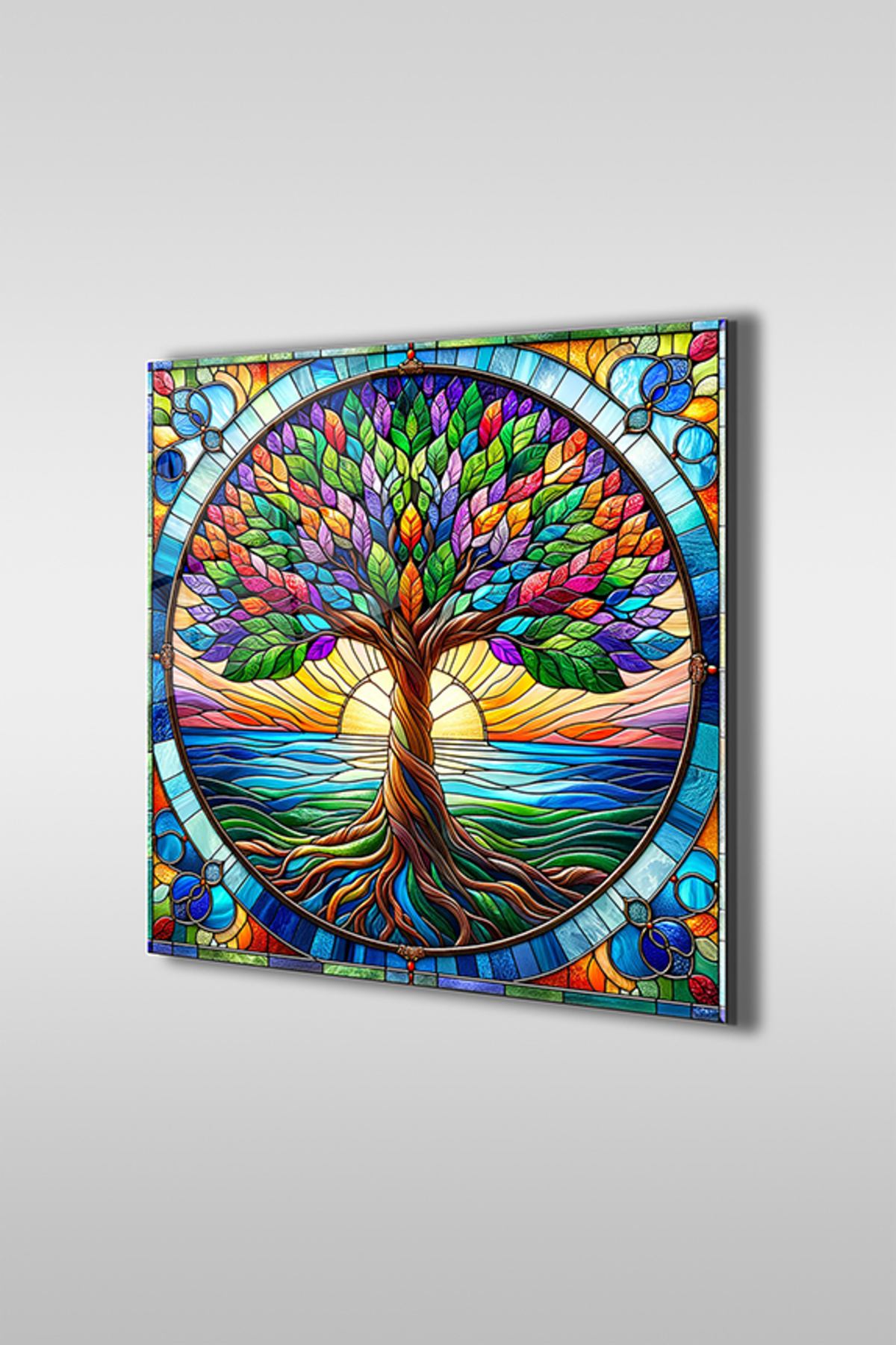 Empresyonist manzara hayat ağacı Cam Tablo, hayat ağacı, sakin manzara Empresyonist manzara hayat ağacı Cam Tablo, hayat ağacı, sakin manzara TOC 50 x 50