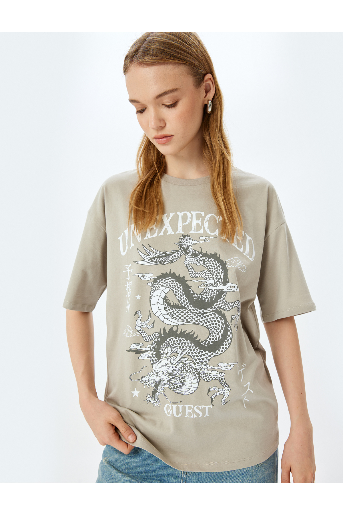 Kısa Kollu Tişört Baskılı Taşlı Bisiklet Yaka Regular Fit Kısa Kollu Tişört Baskılı Taşlı Bisiklet Yaka Regular Fit 4SAK50116EK 2XL