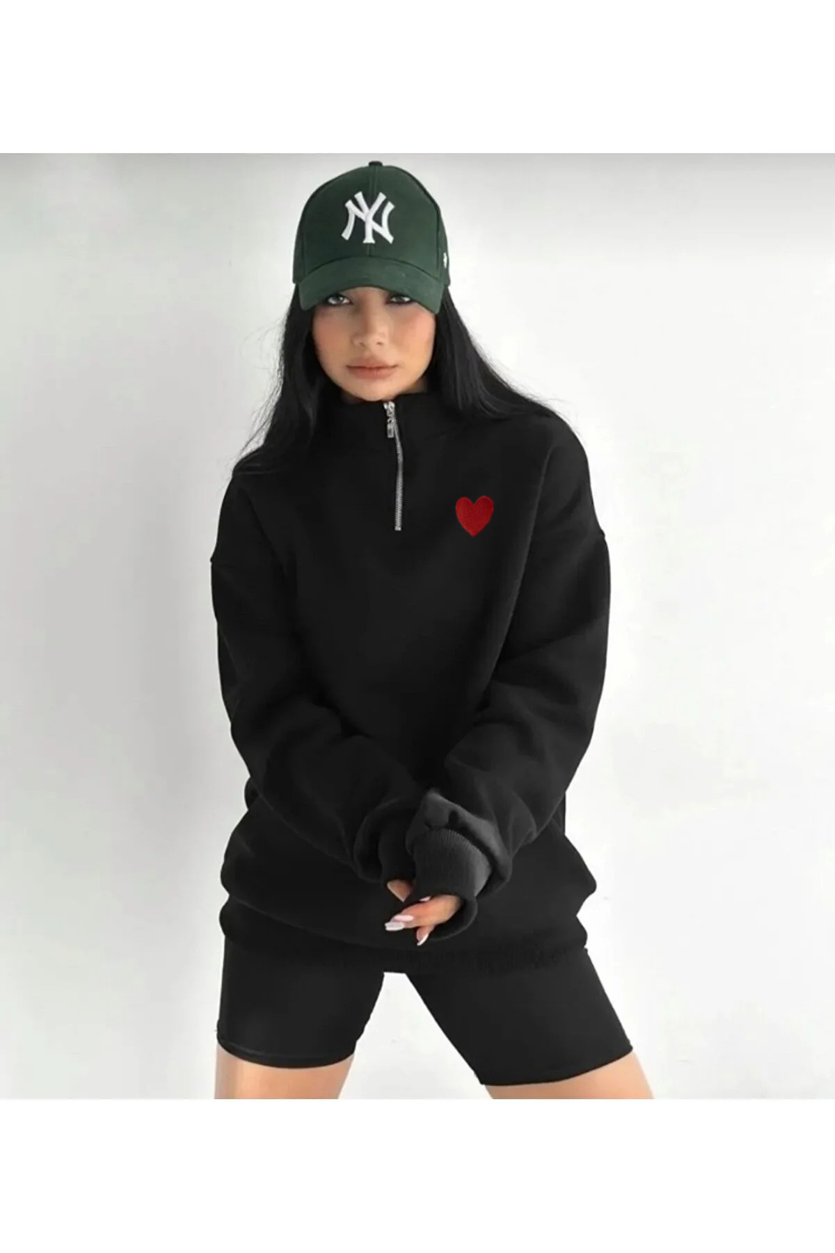 Yarım Fermuarlı Kalp Baskılı Beyaz Kadın Sweatshirt Yarım Fermuarlı Kalp Baskılı Beyaz Kadın Sweatshirt 80604583 2XL