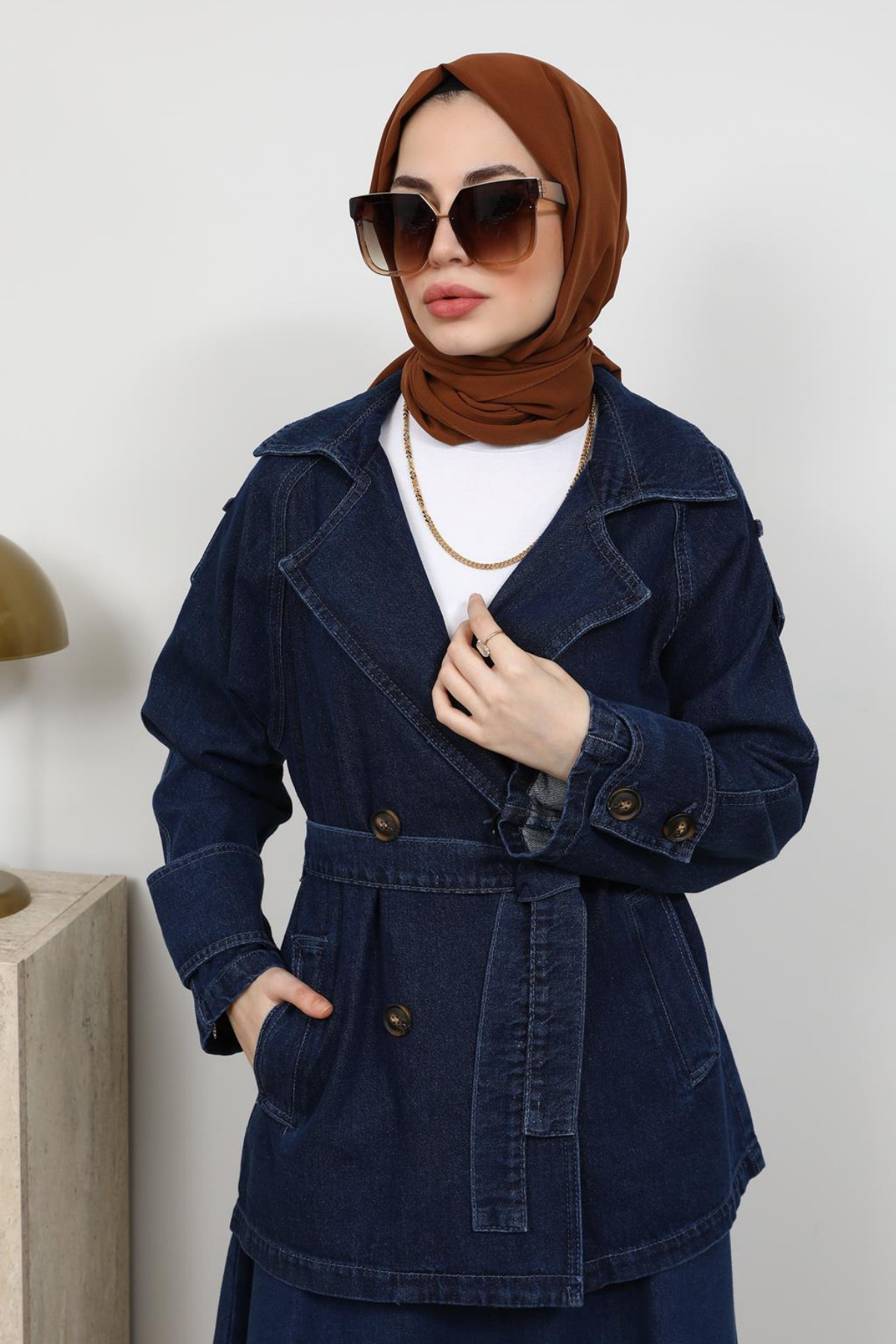 6458-Allerli Denim Trençkot Koyu Mavi 6458-Allerli Denim Trençkot Koyu Mavi bed9-2190 42
