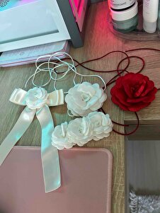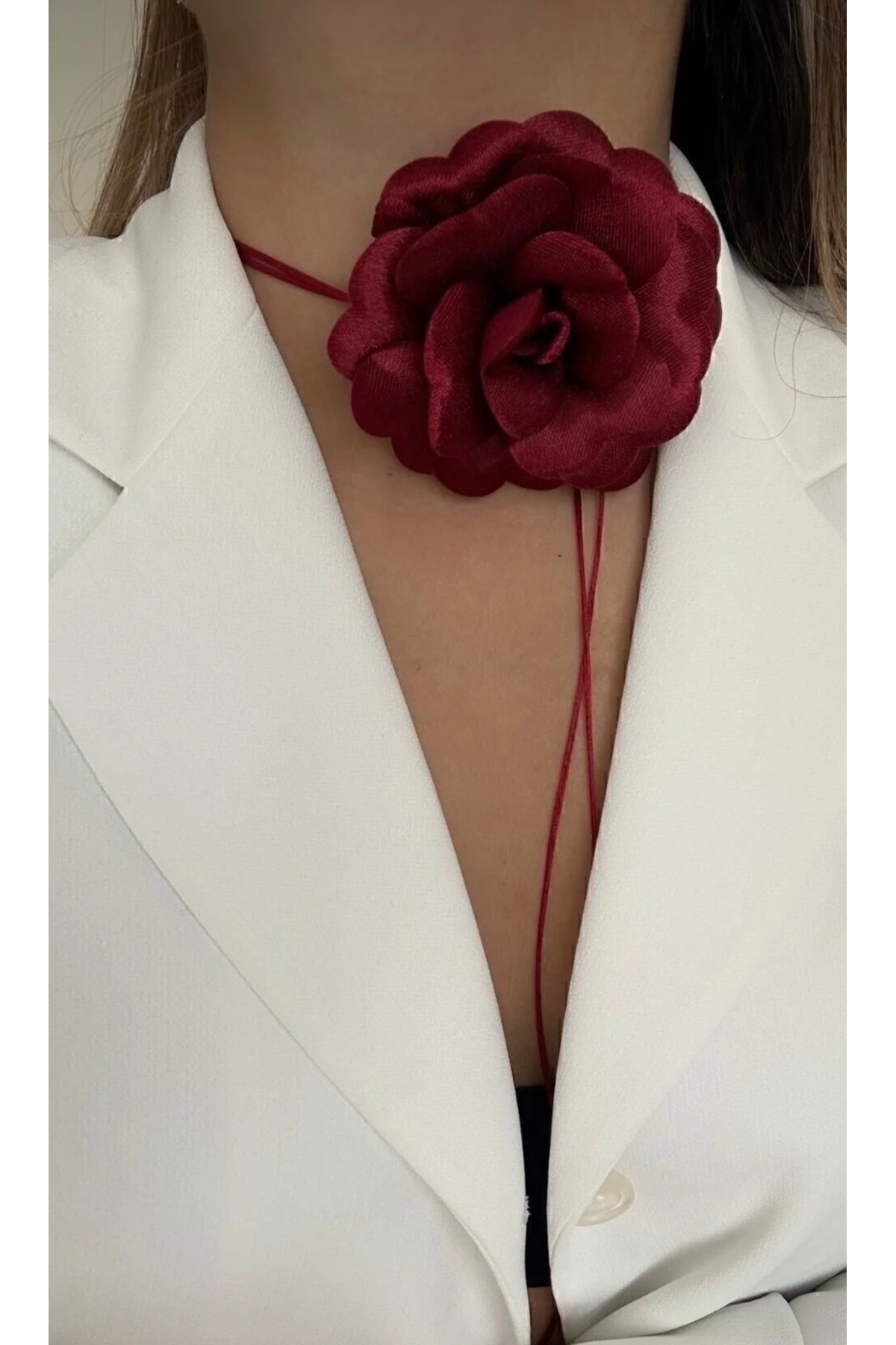 Kırmızı Bağcıklı Kumaş Çiçek Choker Kolye Gül Kolye Kırmızı Bağcıklı Kumaş Çiçek Choker Kolye Gül Kolye DKLY002 تک سایز