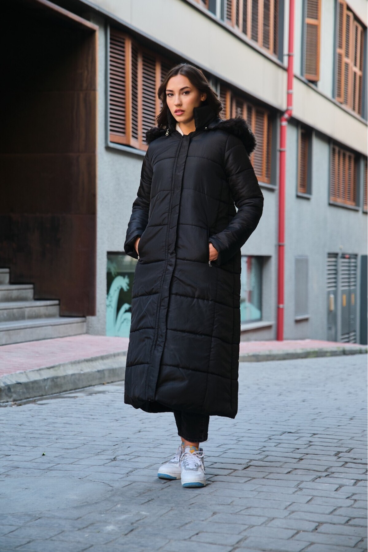 Toridas Diz Boy Kürk Detaylı Şişme Mont Bt293siyah1 Toridas Diz Boy Kürk Detaylı Şişme Mont Bt293siyah1 TDSbt293siyah1 2XL