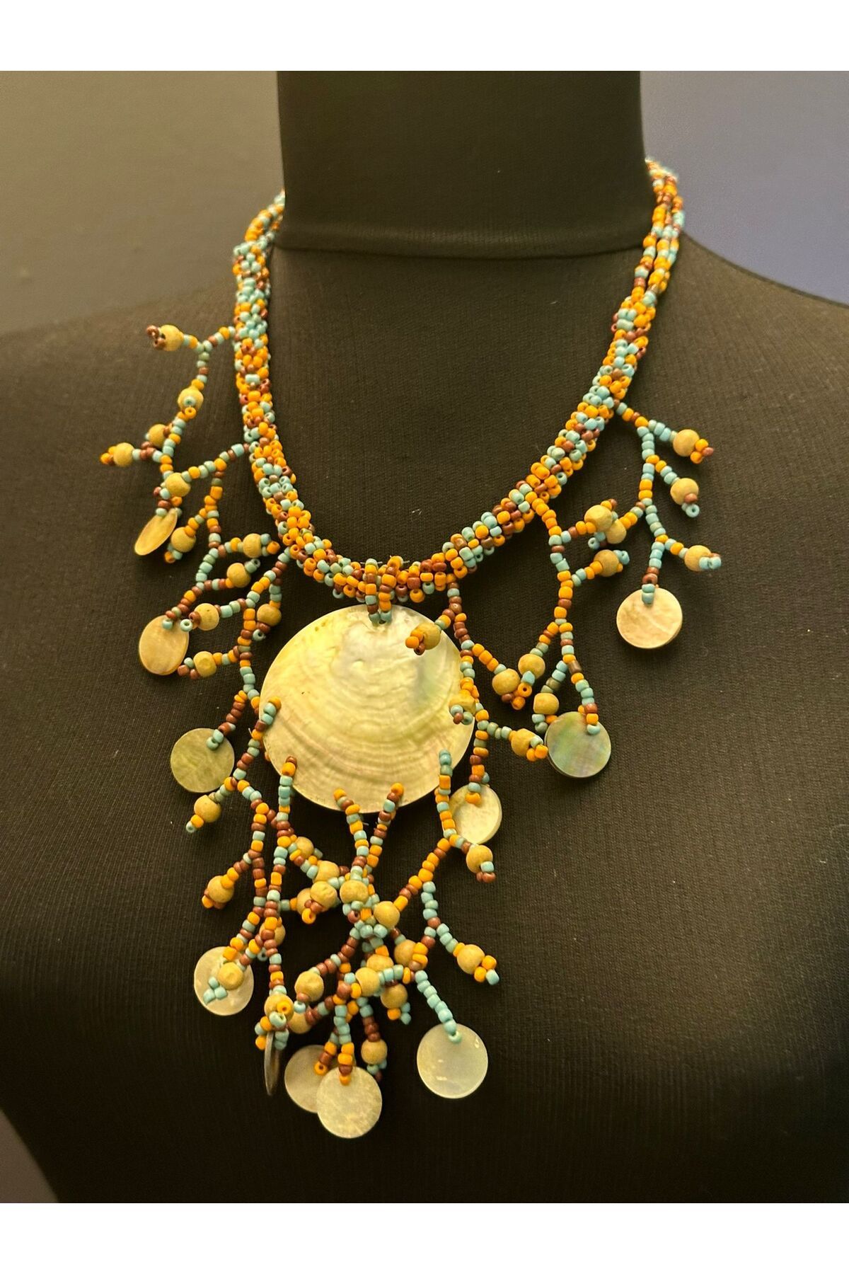 EL YAPIMI TASARIM PULLU TAŞLI OTANTİK KOLYE KADIN KOLYE EL YAPIMI TASARIM PULLU TAŞLI OTANTİK KOLYE KADIN KOLYE 1212181889238G تک سایز