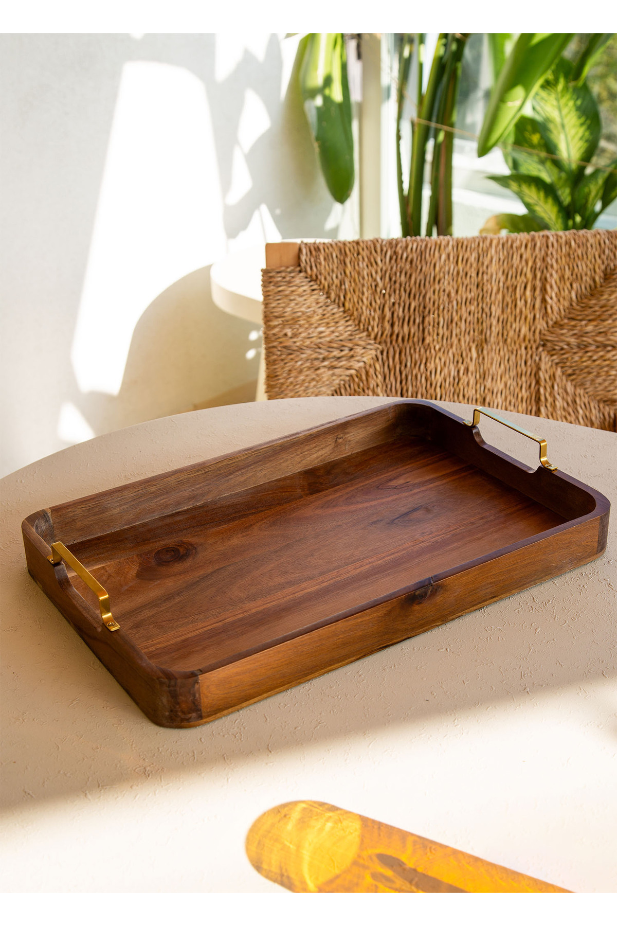 Natura Metal Kollu Akasya Tepsi 45x30 cm Natura Metal Kollu Akasya Tepsi 45x30 cm NTR0004 تک سایز