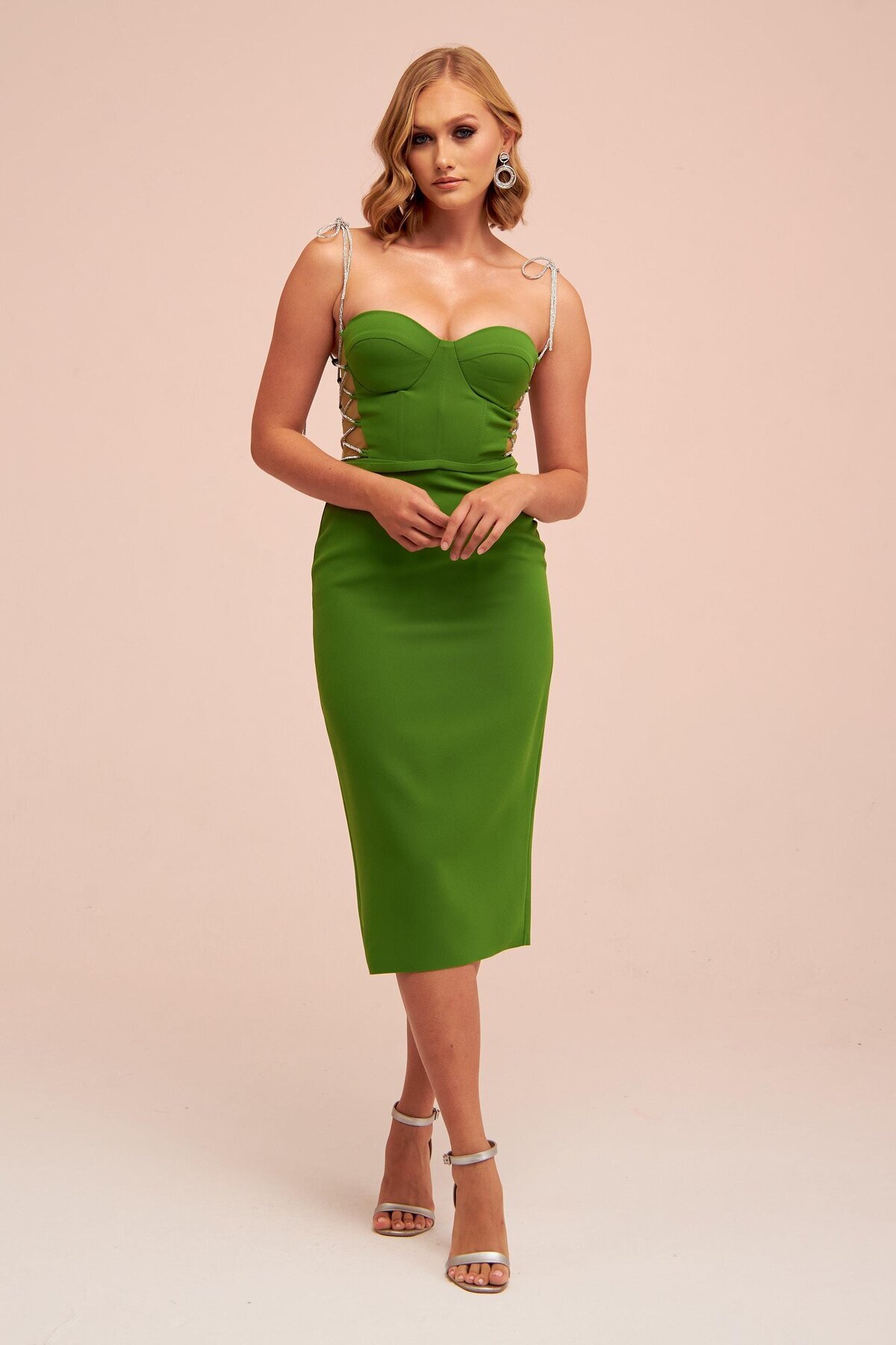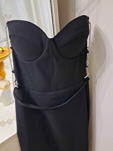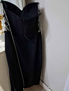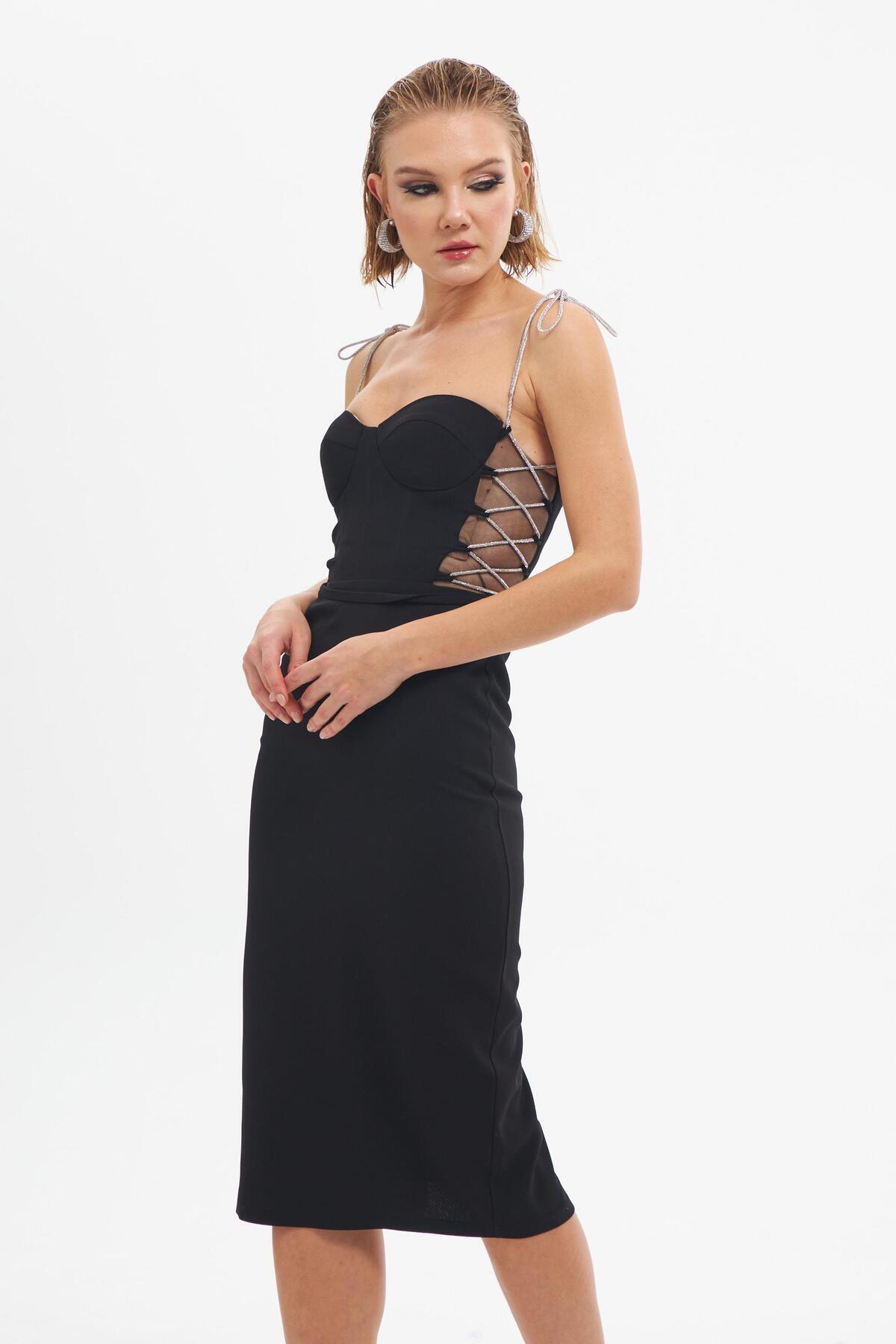 Siyah Taş Bağcıklı Midi Krep Abiye Elbise Siyah Taş Bağcıklı Midi Krep Abiye Elbise 58262 42