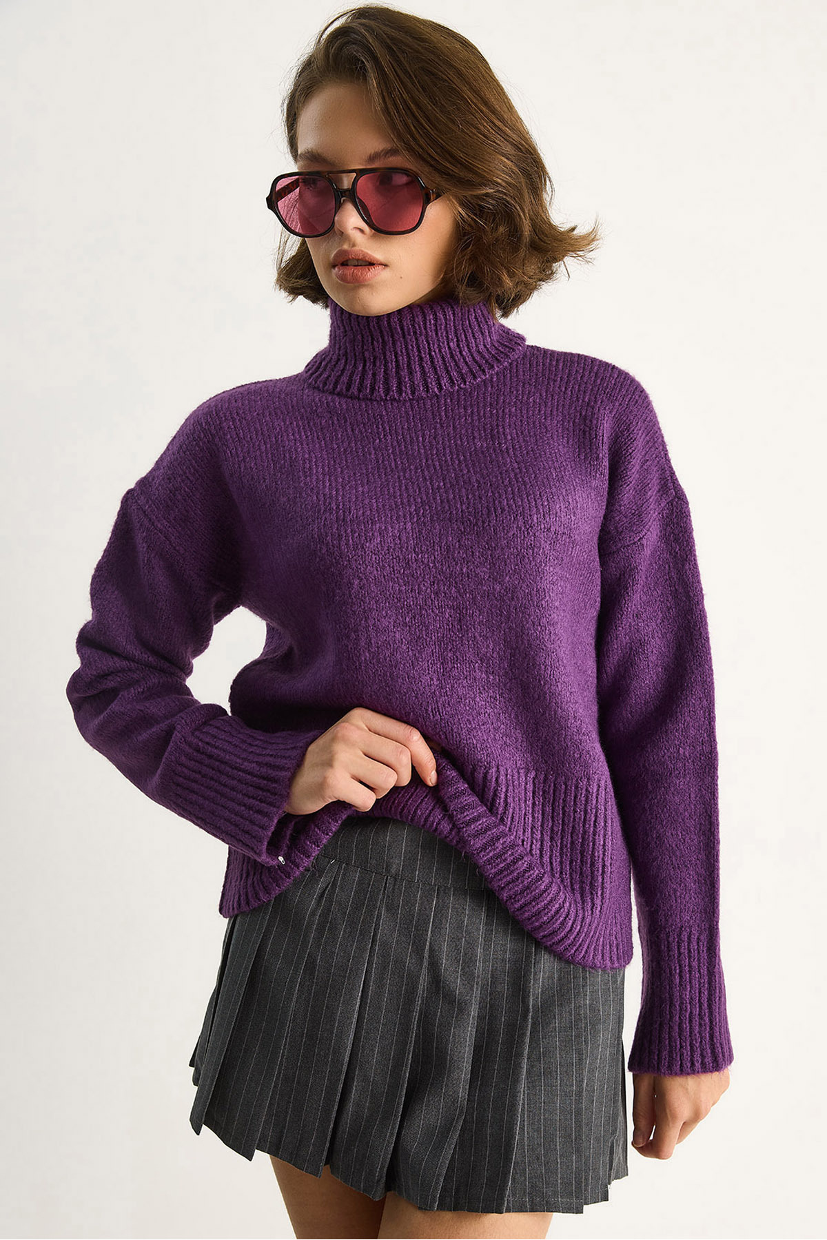 Kadın Balıkçı Yaka Fitilli Triko Kazak Kadın Balıkçı Yaka Fitilli Triko Kazak STK0014 L