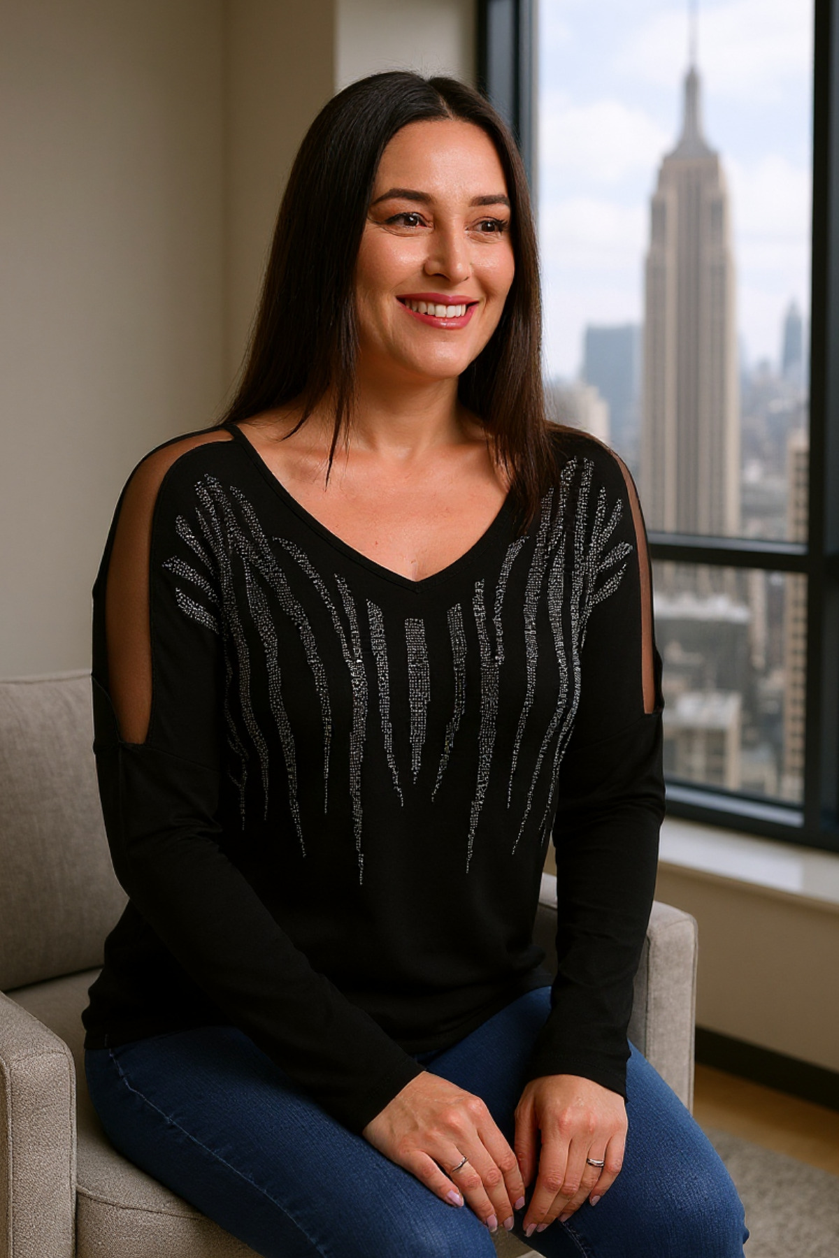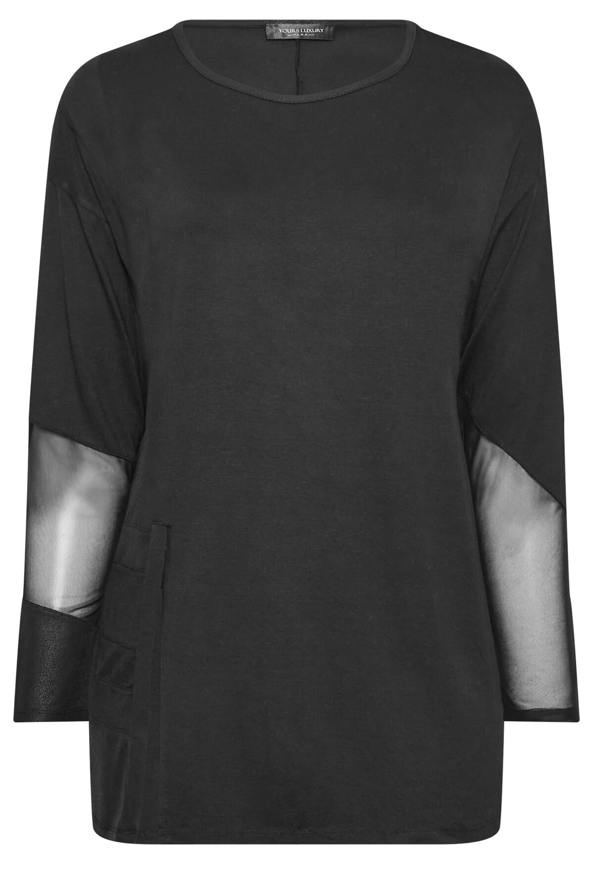 Büyük Beden Suni Deri Detaylı File Kol Yırtmaçlı Bluz 302671 Büyük Beden Suni Deri Detaylı File Kol Yırtmaçlı Bluz 302671 BYK-24K-302671 58-60