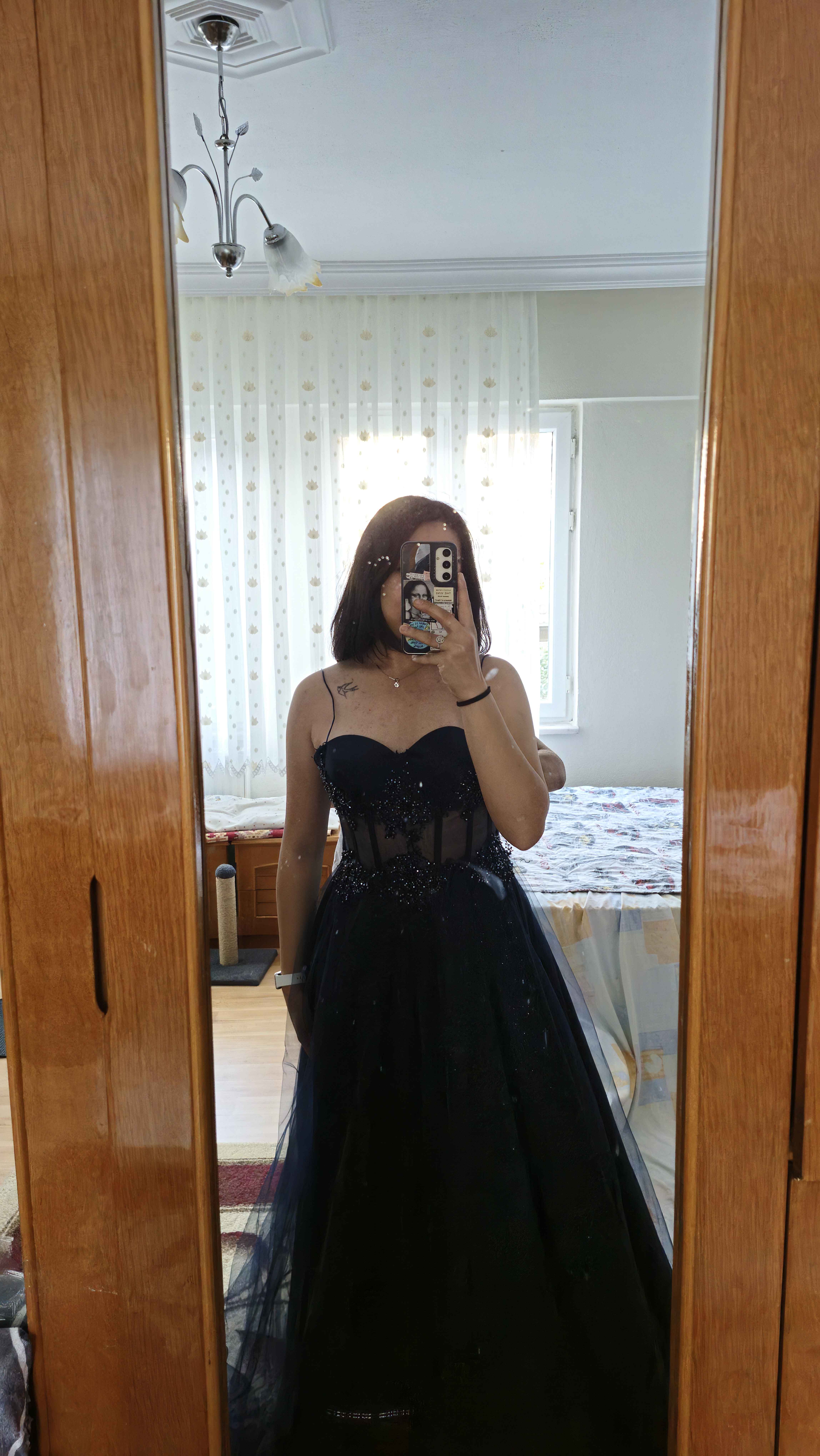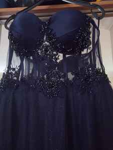 Lacivert Transparan Kristal İşlemeli Dantel Detaylı Simli Abiye Ve Nikah Elbise Lacivert Transparan Kristal İşlemeli Dantel Detaylı Simli Abiye Ve Nikah Elbise LM220927BS001 44