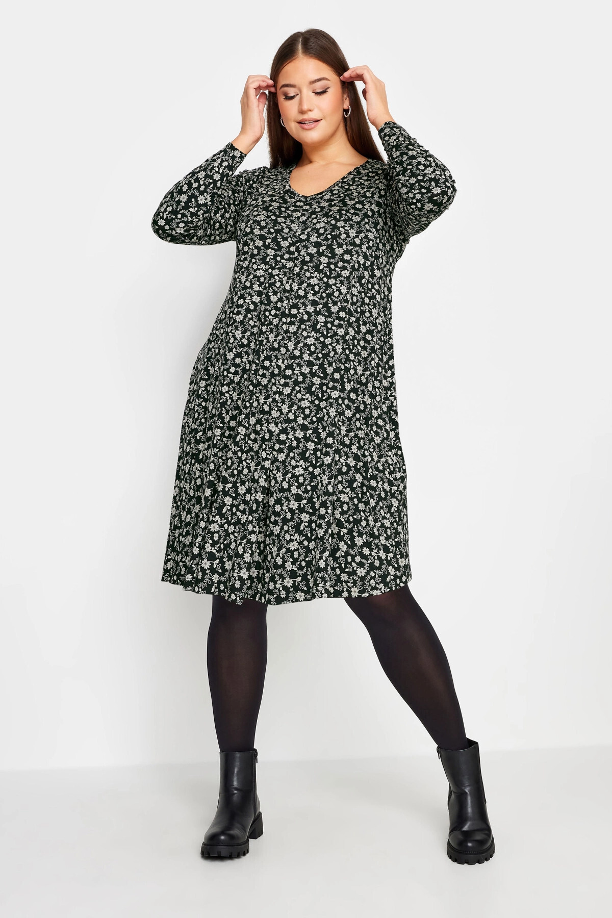 Büyük Beden Çiçek Desenli Uzun Kollu Yakası Bağlama Detaylı Kısa Elbise 302750 Büyük Beden Çiçek Desenli Uzun Kollu Yakası Bağlama Detaylı Kısa Elbise 302750 BYK-24K-302750 54-56