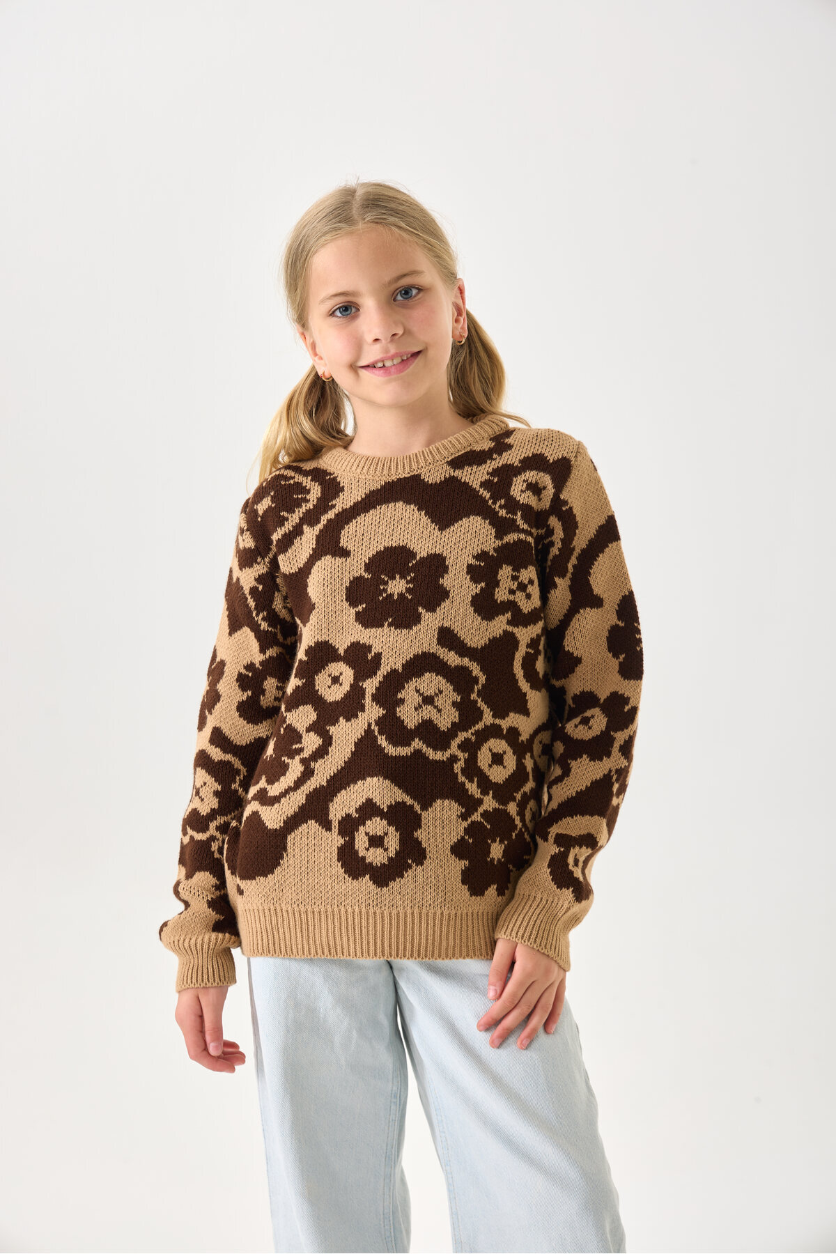 Kız Çocuk Saç Örgü Desenli Triko Kazak Kız Çocuk Saç Örgü Desenli Triko Kazak NSR2023-27 13-14 Yaş