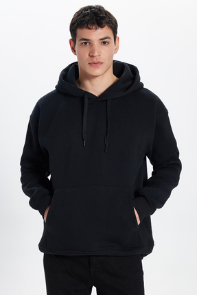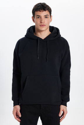 Unisex Oversize Geniş Kesim Pamuklu Yumuşak Dokulu Içi Polarlı Basic Siyah Kapüşonlu Sweatshirt Unisex Oversize Geniş Kesim Pamuklu Yumuşak Dokulu Içi Polarlı Basic Siyah Kapüşonlu Sweatshirt SW240003-01 2XL