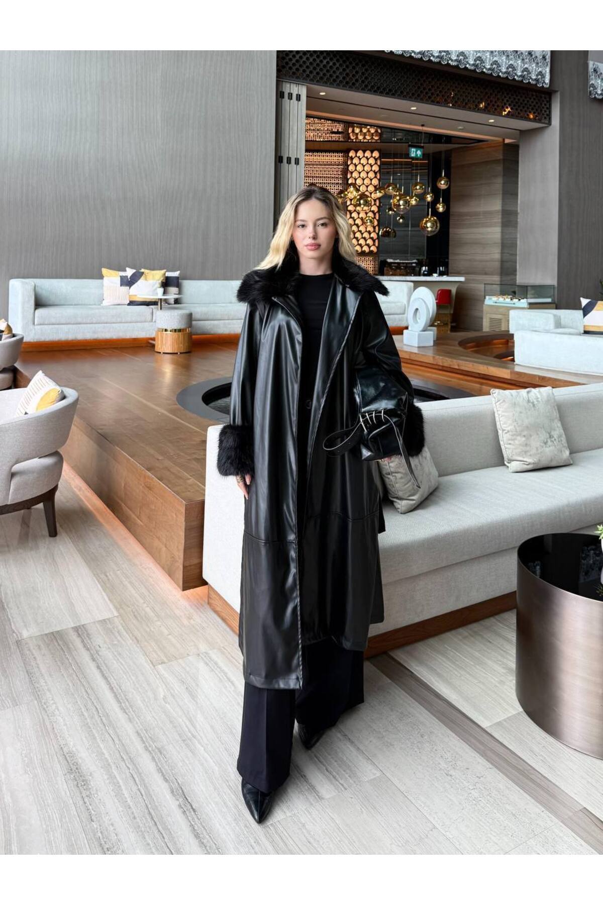 KOL YAKA KÜRKLÜ UZUN MAT DERİ CEKET PALTO KABAN KOL YAKA KÜRKLÜ UZUN MAT DERİ CEKET PALTO KABAN KRKDE2024 42