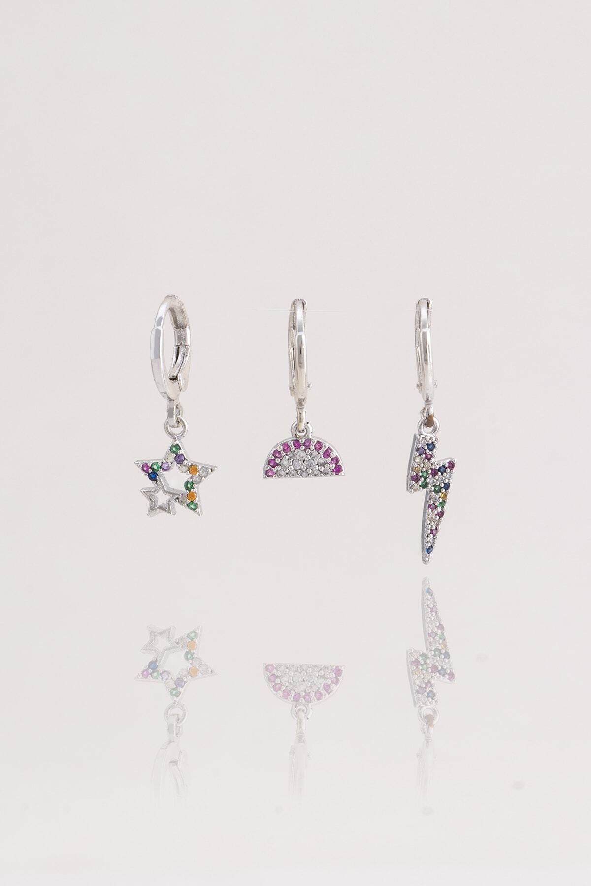 925 Ayar Gümüş Baget Taşlı Halka Küpe 925 Ayar Gümüş Baget Taşlı Halka Küpe ms-6009 تک سایز