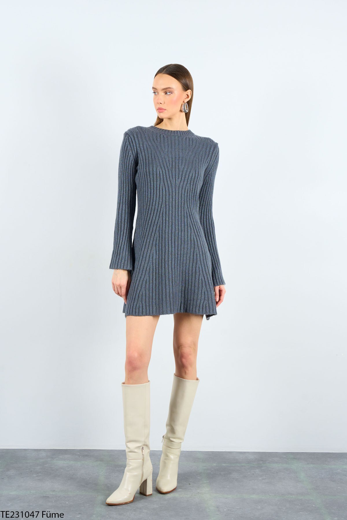 Kadın Siyah Dik Yaka Fitilli Mini Triko Elbise Kadın Siyah Dik Yaka Fitilli Mini Triko Elbise TE231046 Standart