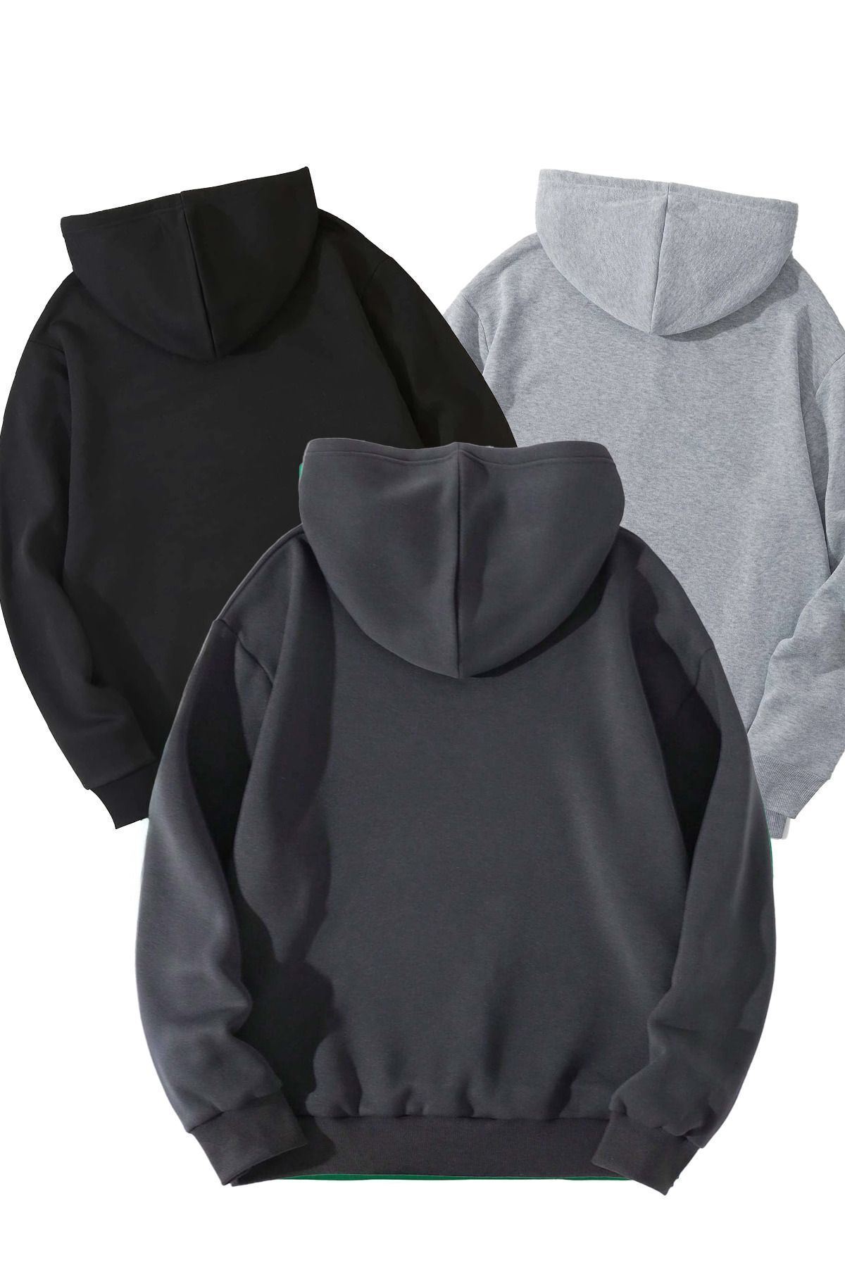 3'Lü Düz Basic Kalın Kışlık Sweatshirt - Siyah Gri Füme Oversize Kapüşonlu 3'Lü Düz Basic Kalın Kışlık Sweatshirt - Siyah Gri Füme Oversize Kapüşonlu 3LUHOODIE-DBBT XL