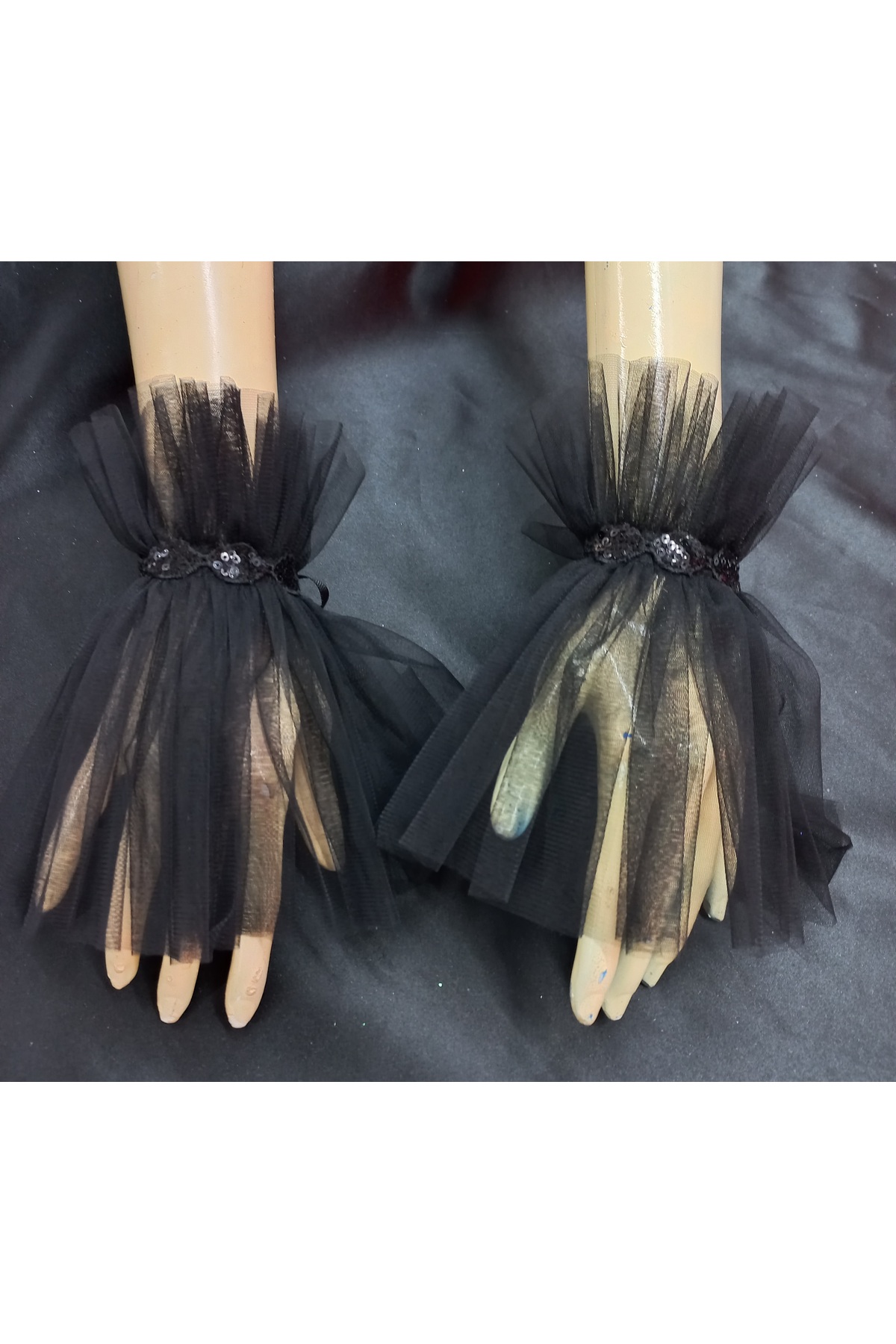 Bukle puantiyeli tül manşet bileklik siyah Bukle puantiyeli tül manşet bileklik siyah 00145 تک سایز