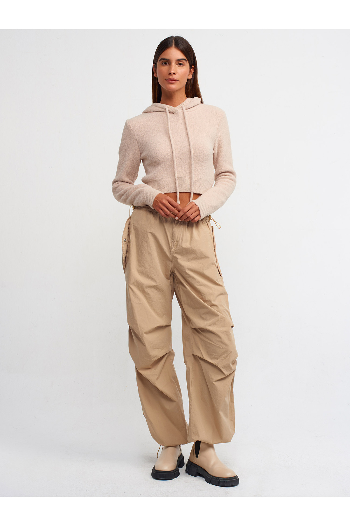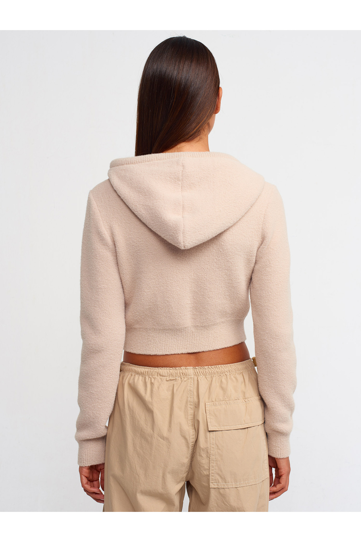 10486 Yumuşak Dokulu Kapşonlu Crop Kazak-Bej 10486 Yumuşak Dokulu Kapşonlu Crop Kazak-Bej 101A10486 Standart