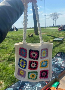 Renkli Çiçek Desenli %100 El Yapımı Kroşe Çanta Renkli Çiçek Desenli %100 El Yapımı Kroşe Çanta C23007 Standart