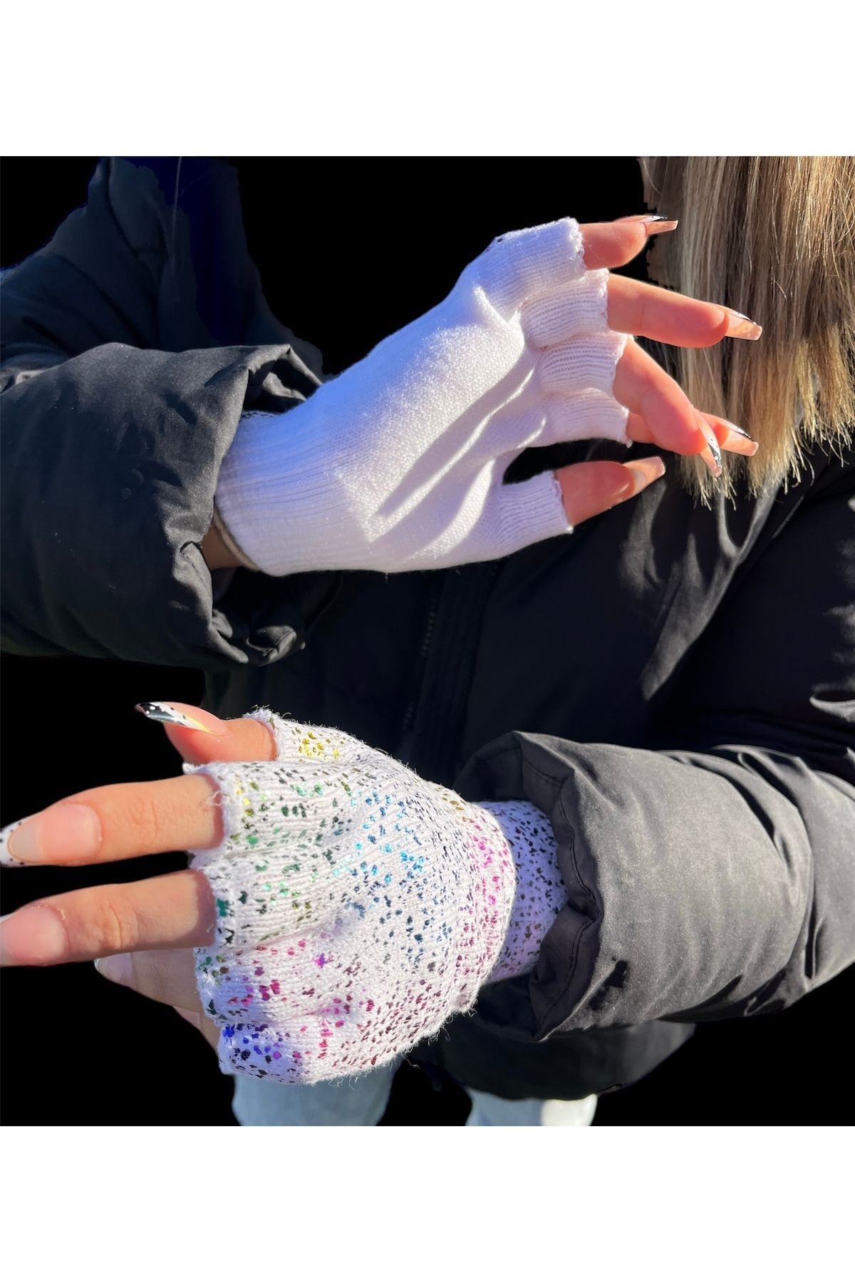 Parlak Baskılı Kadın Eldiven - beyaz PS3331 Parlak Baskılı Kadın Eldiven - beyaz PS3331 S/M