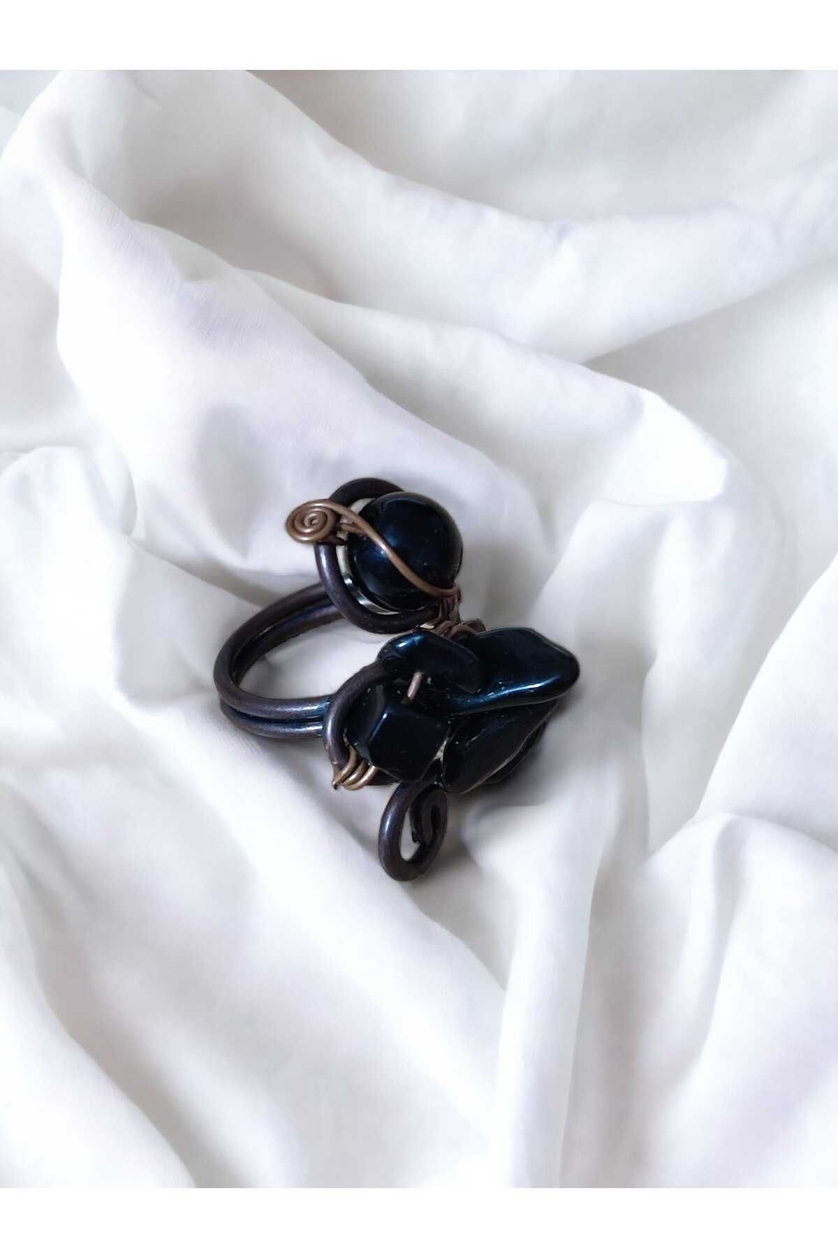 Kar obsidyen doğal taş gümüş renk el yapımı tel yüzük Kar obsidyen doğal taş gümüş renk el yapımı tel yüzük 8227228929291919191919 XL