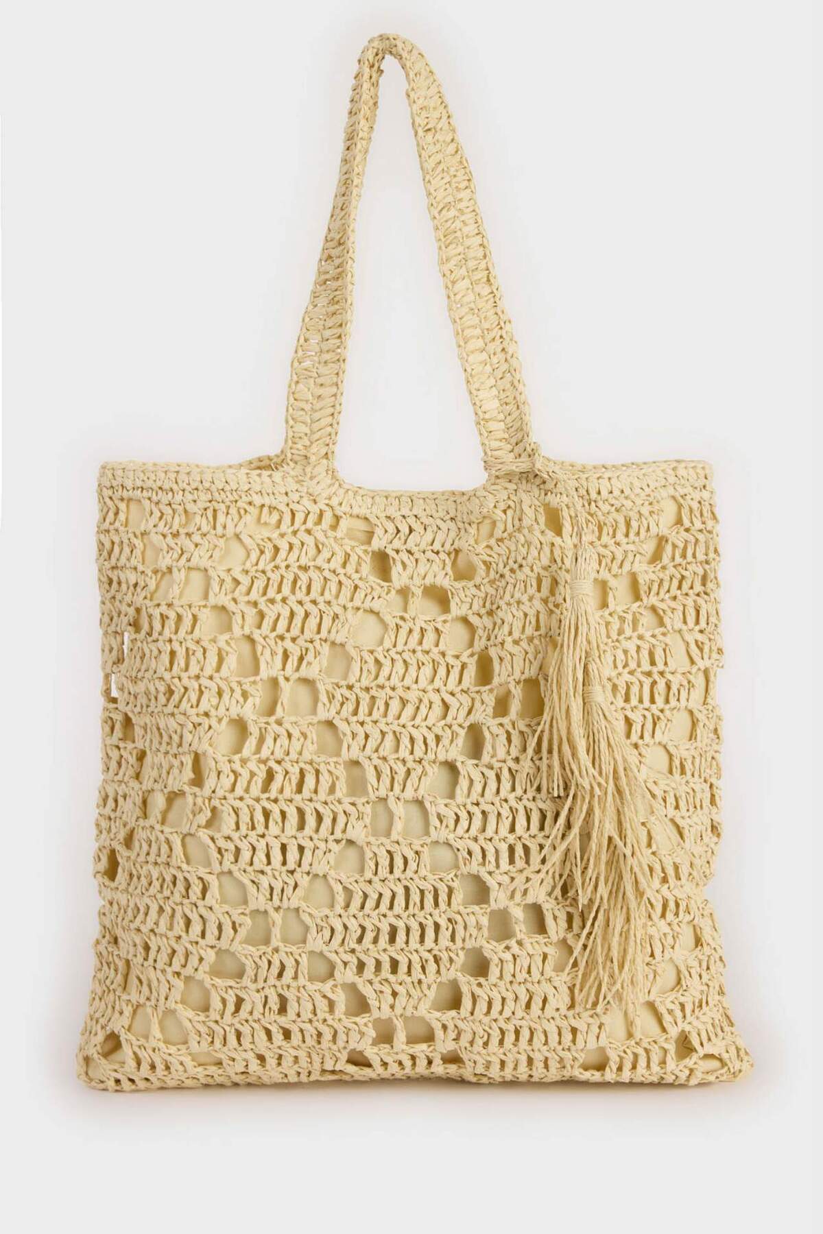 Bej Renk Motifli Bulmaca Hasır Çanta Bej Renk Motifli Bulmaca Hasır Çanta KH000069 Standart