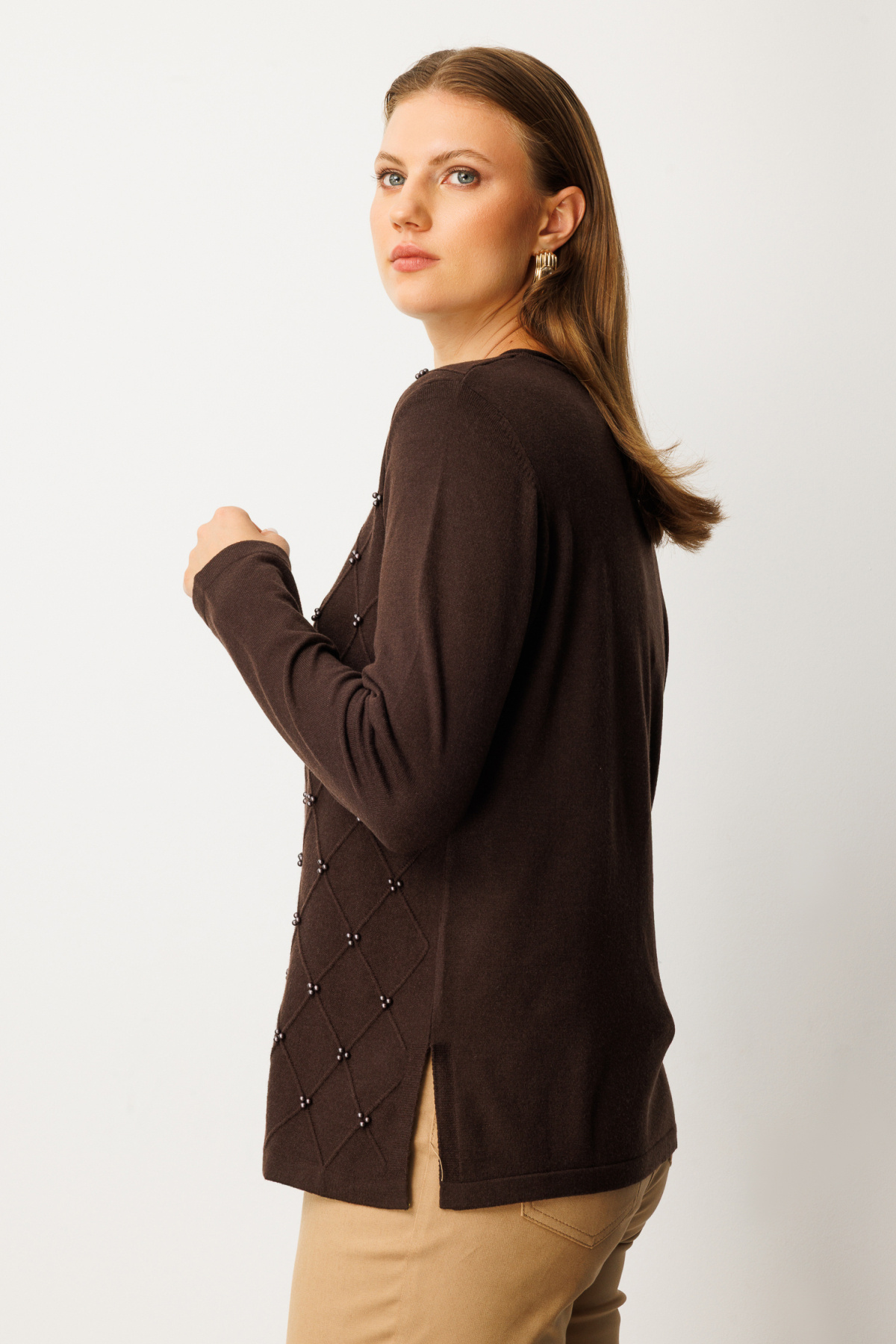 Taş İşleme Detaylı Çizgi Örgü Desenli Kazak Taş İşleme Detaylı Çizgi Örgü Desenli Kazak Y061 2XL