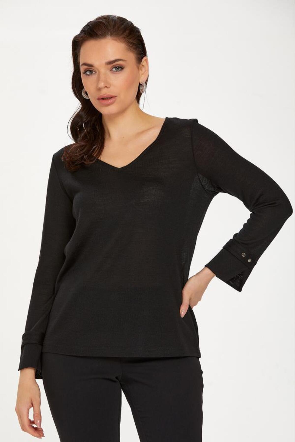 V Yaka Kolu Aksesuarlı Triko Bluz 234-1718 V Yaka Kolu Aksesuarlı Triko Bluz 234-1718 2XL