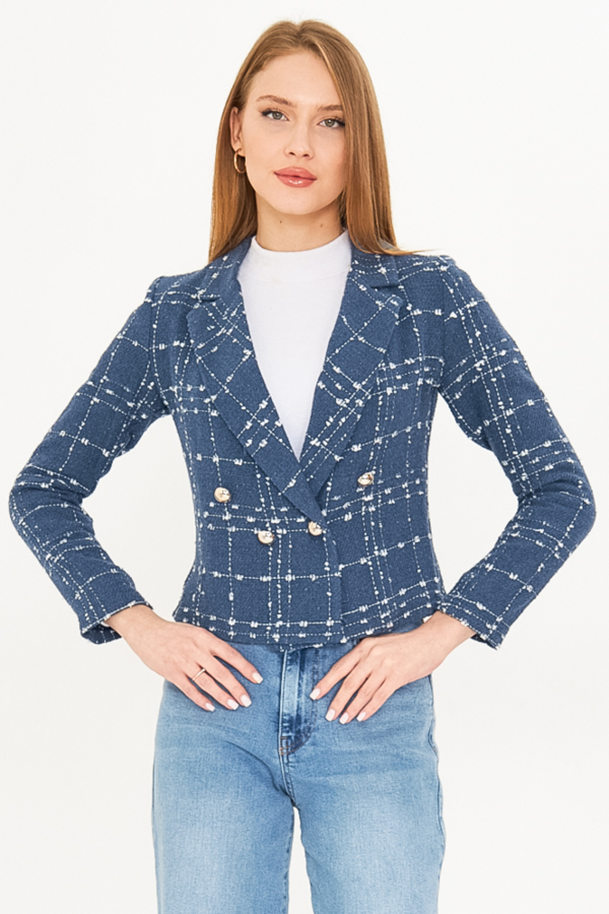 Kadın Koyu Mavi Kruvaze Yaka Tüvit Crop Ceket ARM-24K001014 Kadın Koyu Mavi Kruvaze Yaka Tüvit Crop Ceket ARM-24K001014 XL