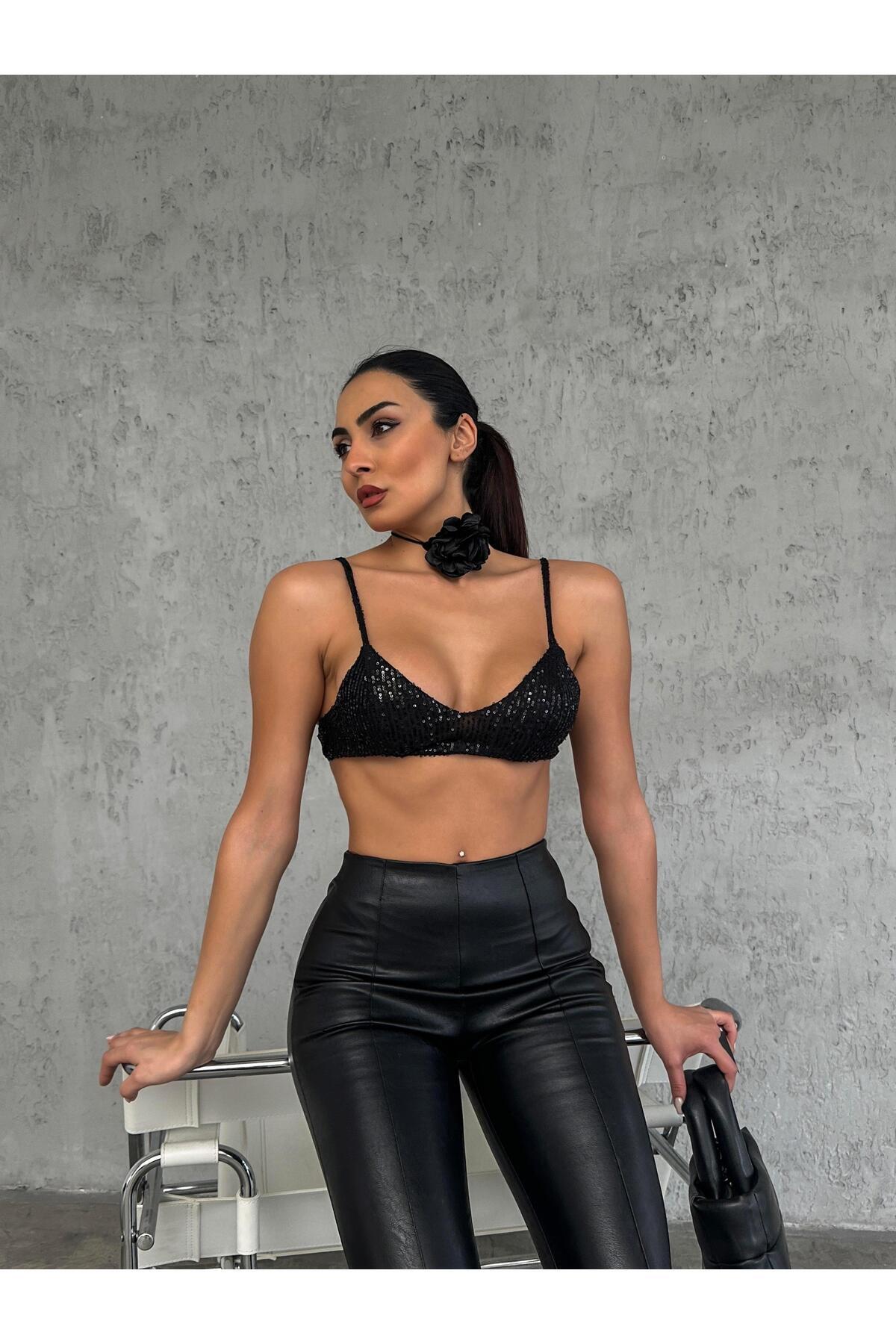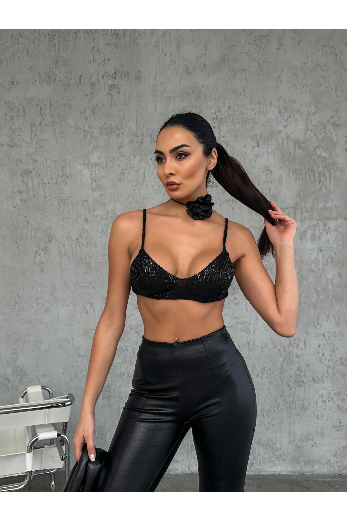 Kadın Ayarlanabilir Askı Pul Payet İşleme Siyah Büstiyer Kadın Ayarlanabilir Askı Pul Payet İşleme Siyah Büstiyer 24KB00526 L