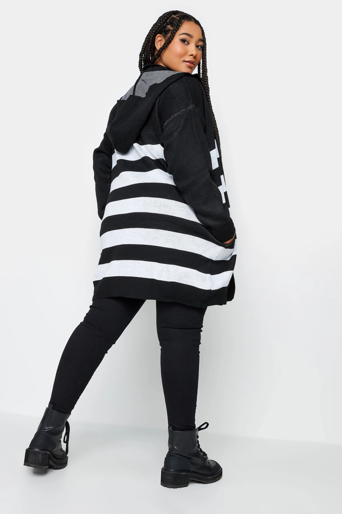 Büyük Beden Uzun Kollu Cepli Kapüşonlu Çizgili Örme Hırka 302793 Büyük Beden Uzun Kollu Cepli Kapüşonlu Çizgili Örme Hırka 302793 BYK-24K-302793 58-60