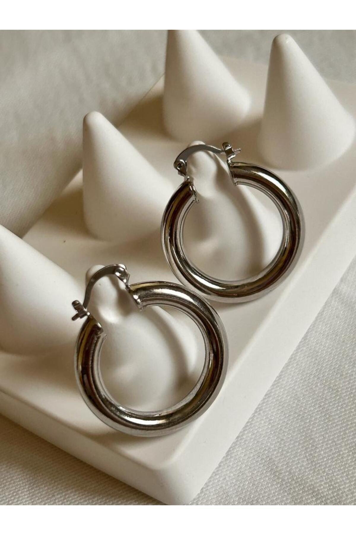 Silver Basic Kalın Halka Küpe Silver Basic Kalın Halka Küpe RS1341 تک سایز