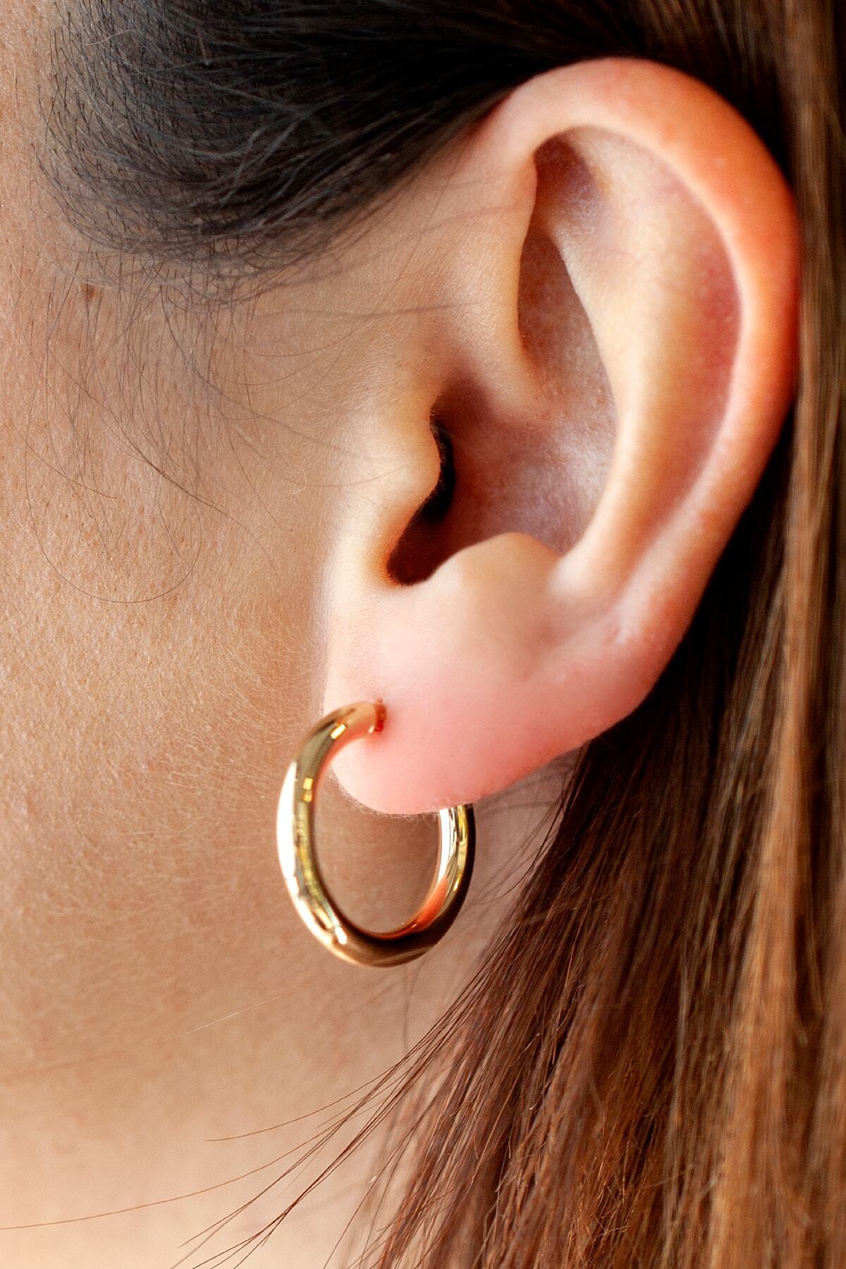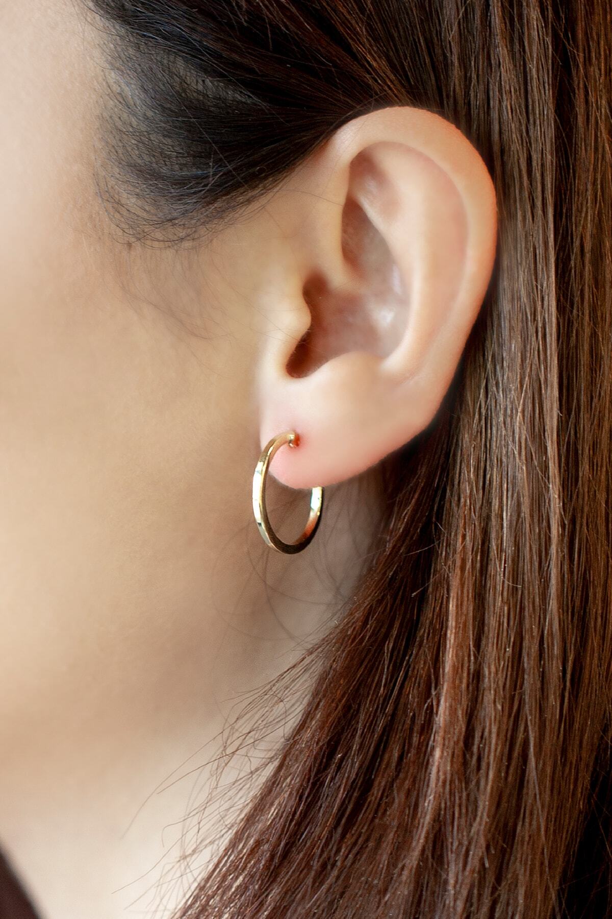 14 Ayar Altın Beyaz Halka Küpe (23MM) 14 Ayar Altın Beyaz Halka Küpe (23MM) kp2226 تک سایز