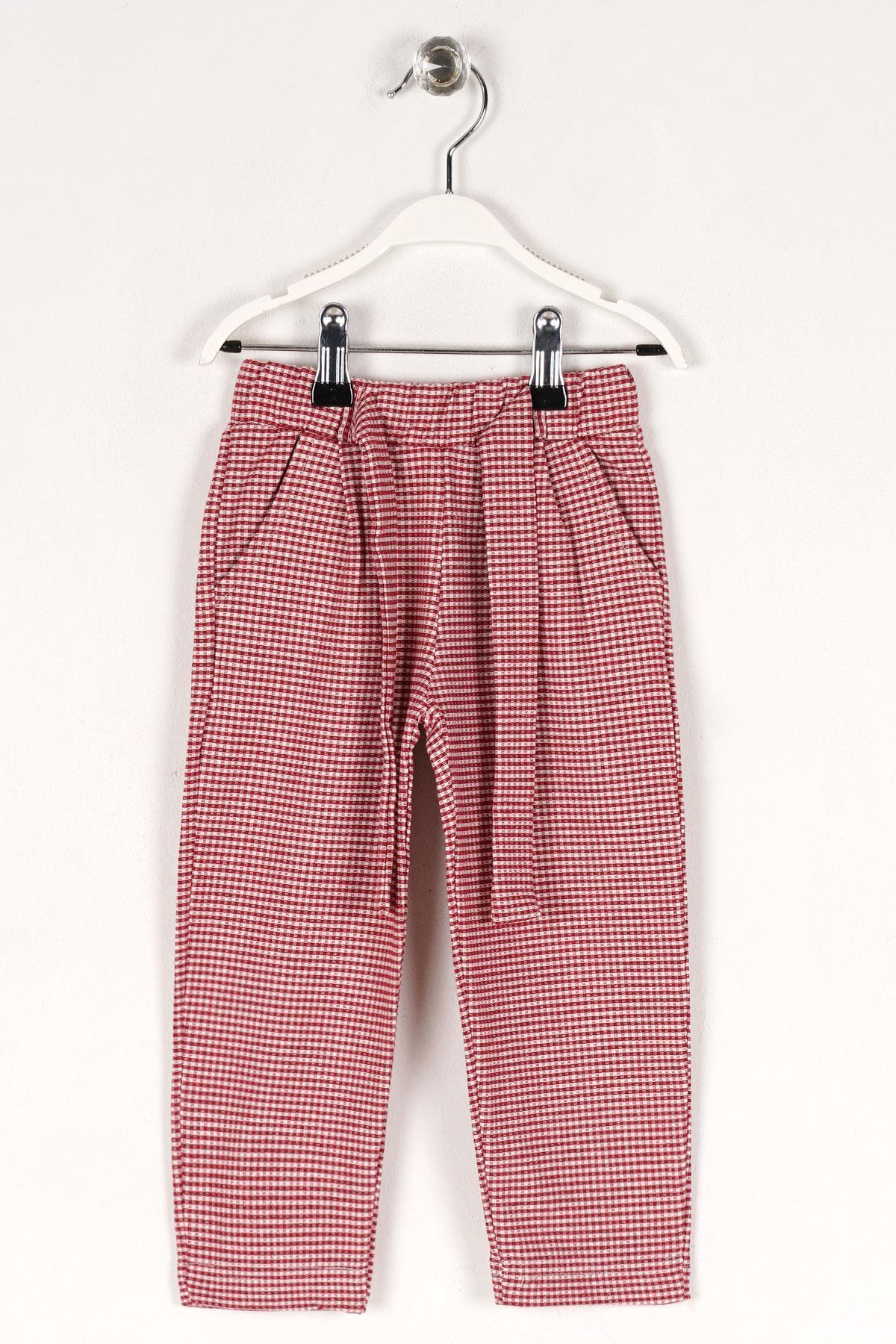 Beyaz Puantiyeli Paçası Ekoseli Kırmızı Kadife Kumaş Kız Çocuk Pantolon - Kız Bebek Pantolon Beyaz Puantiyeli Paçası Ekoseli Kırmızı Kadife Kumaş Kız Çocuk Pantolon - Kız Bebek Pantolon 0052 3 Yaş