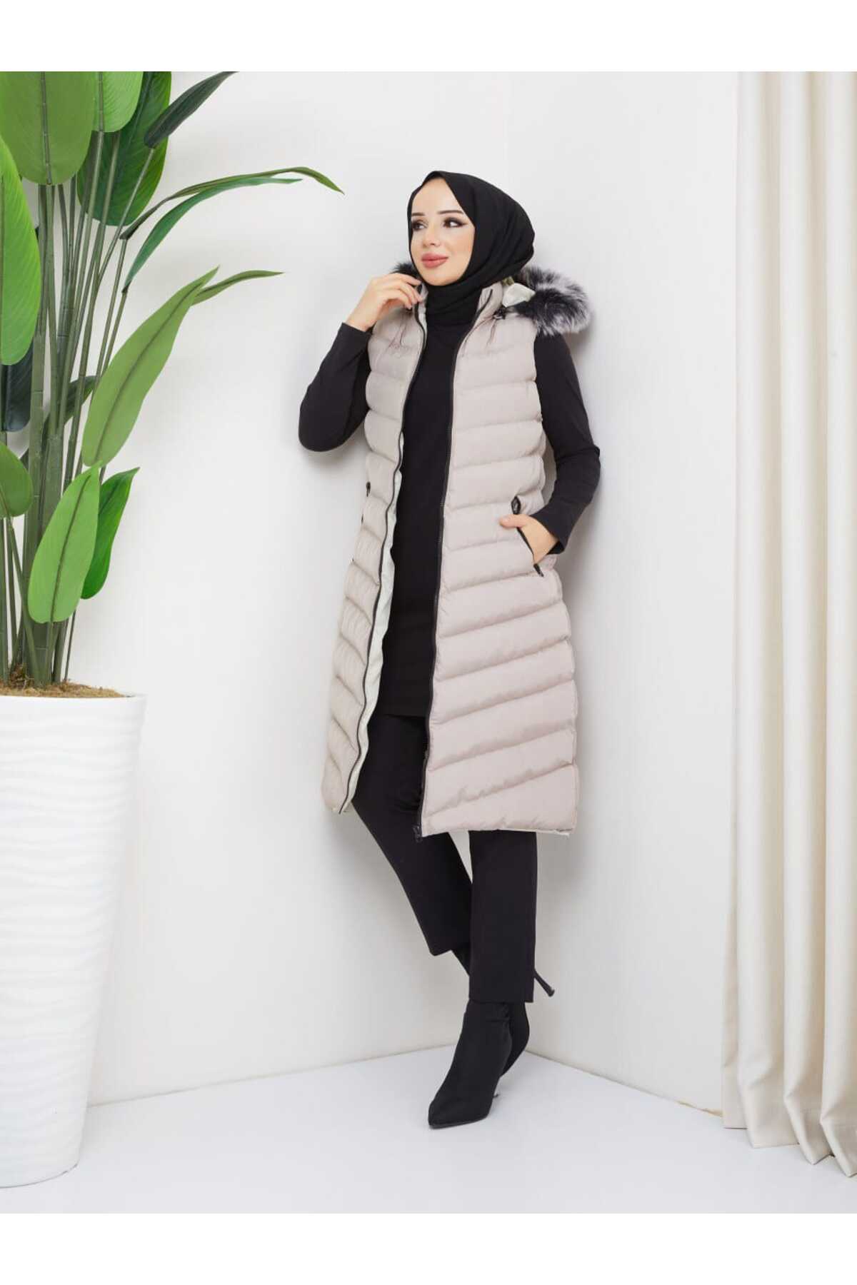 Kadın Taş Rengi Trend Uzun Yelek Mont Kadın Taş Rengi Trend Uzun Yelek Mont TYC71SQ6LN170306040669844