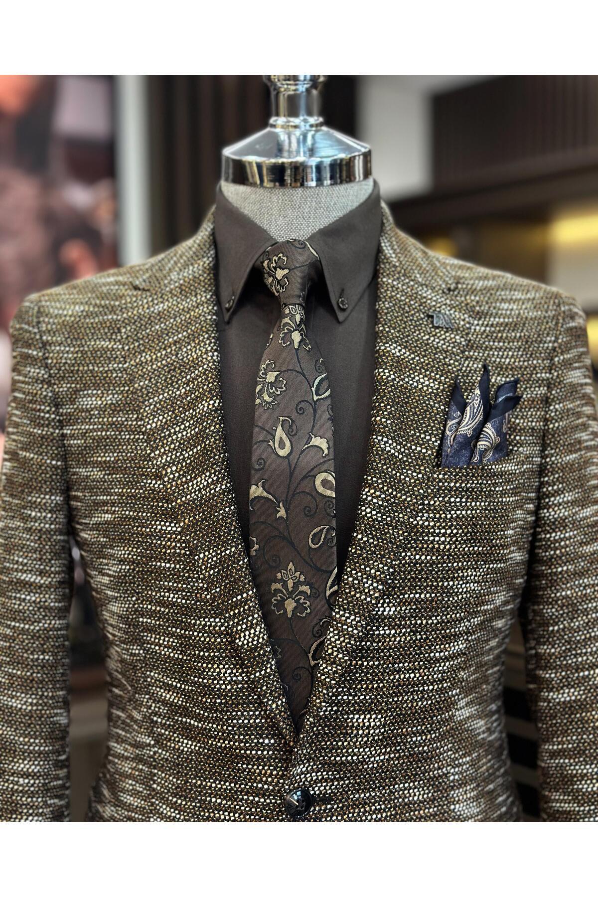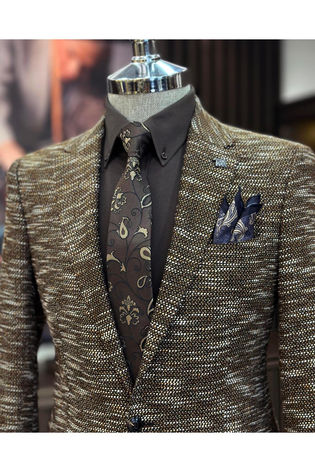 İtalyan stil slim fit mono yaka erkek ceket kahverengi T10966 İtalyan stil slim fit mono yaka erkek ceket kahverengi T10966 58