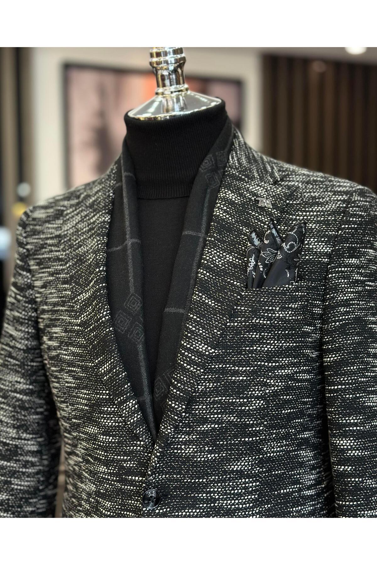 İtalyan stil slim fit mono yaka erkek ceket siyah T10967 İtalyan stil slim fit mono yaka erkek ceket siyah T10967 54