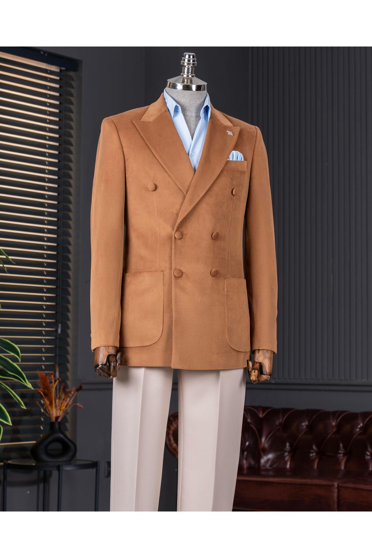 İtalyan stil kadife kruvaze erkek tek ceket Vizon T11031 İtalyan stil kadife kruvaze erkek tek ceket Vizon T11031 58