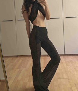 Siyah Transparan Tül Pantolon Siyah Transparan Tül Pantolon 32314 M