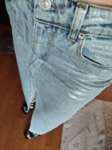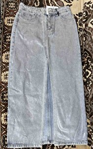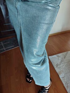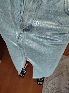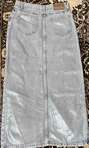 Varak Baskılı Yırtmaçlı Mavi Maxi Kot Etek Varak Baskılı Yırtmaçlı Mavi Maxi Kot Etek 23W02028 42